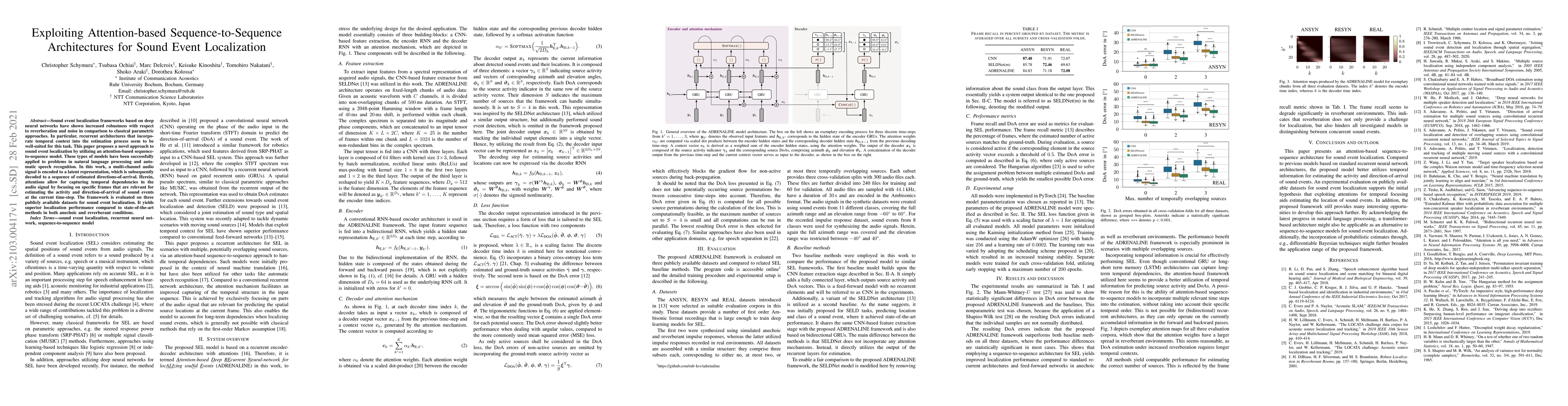 This paper proposes an attention-based sequence-to-sequence model for sound event localization, achieving superior performance in both anechoic and reverberant conditions compared to state-of-the-art methods. The model leverages temporal context and attention mechanisms to effectively capture relevant audio signal frames for accurate direction-of-arrival estimation.