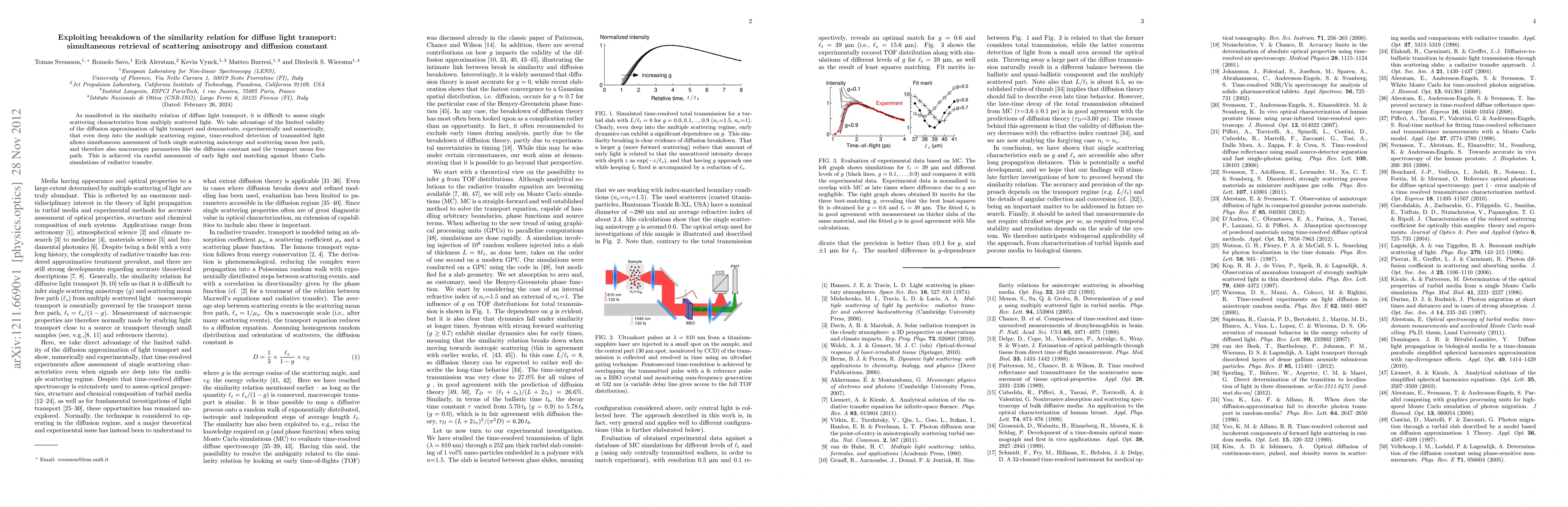 This paper explores the breakdown of the similarity relation in diffuse light transport to determine scattering anisotropy and the diffusion constant. By using time-resolved detection of transmitted light and comparing it against Monte Carlo simulations, the authors demonstrate the simultaneous retrieval of these parameters even in the multiple scattering regime.