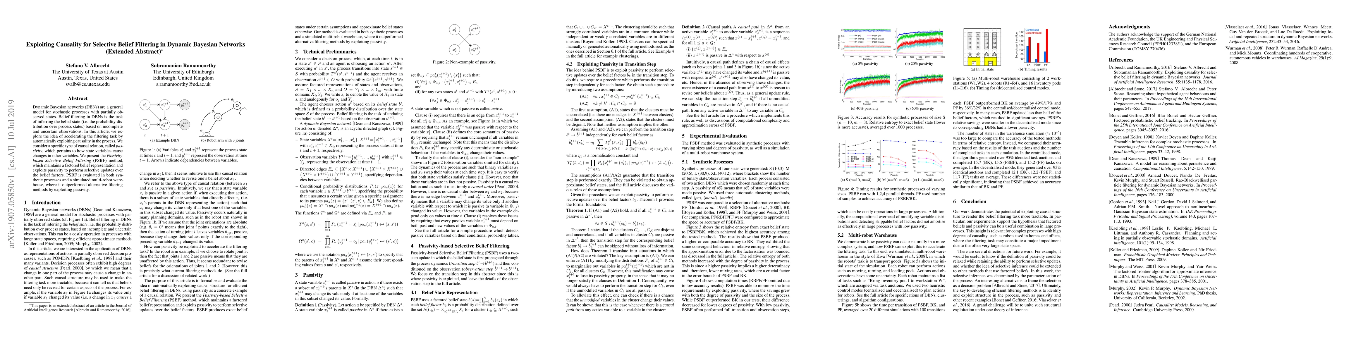 This paper introduces the Passivity-based Selective Belief Filtering (PSBF) method to accelerate belief filtering in Dynamic Bayesian Networks by exploiting causal passivity relations. PSBF maintains a factored belief representation and selectively updates belief factors based on passivity, outperforming alternative methods in synthetic and multi-robot warehouse simulations.