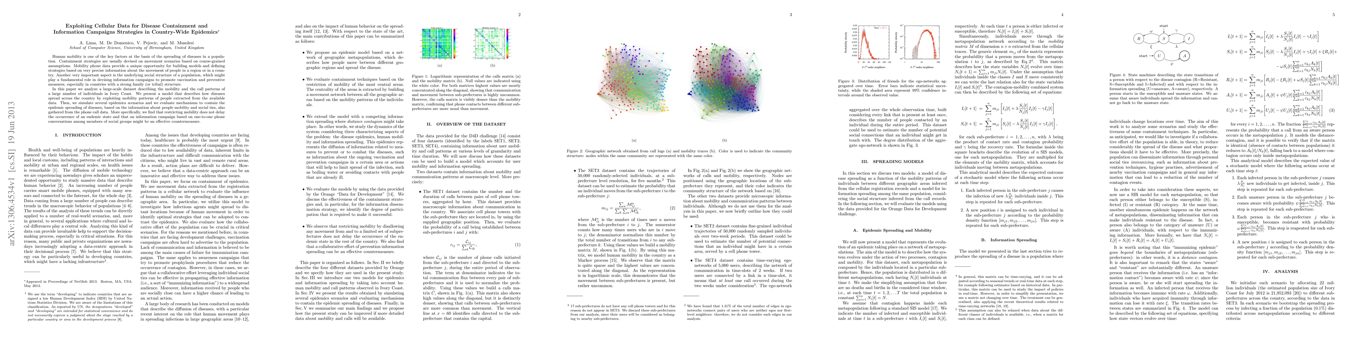 This paper uses cellular data to model disease spread in Ivory Coast, analyzing mobility and call patterns to devise containment strategies. It finds that restricting mobility alone is ineffective, but an information campaign leveraging phone conversations among social groups can be an effective countermeasure.
