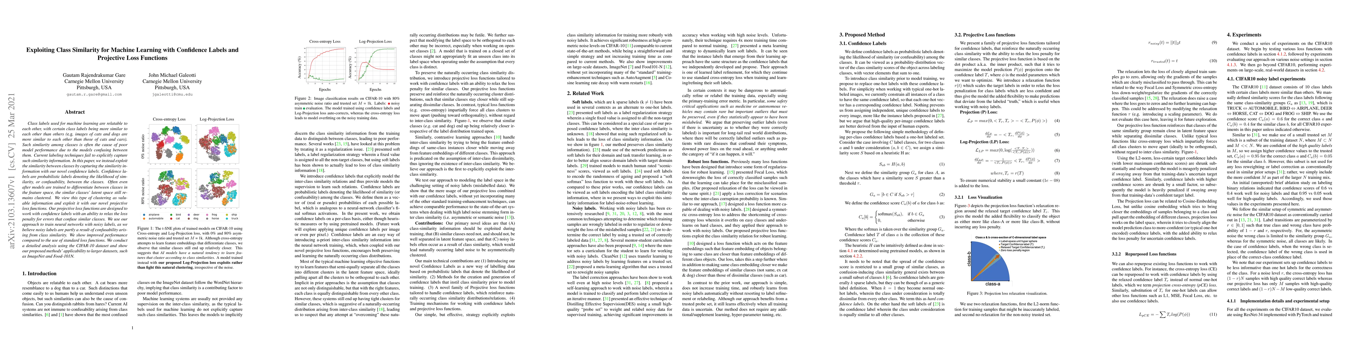 This paper proposes using 'confidence labels' to exploit class similarity in machine learning models, which often struggle with confusing similar classes like cats and dogs. The authors introduce novel 'projective loss functions' that reduce penalty for errors involving similar classes. The method improves model performance, especially with noisy labels, and has been tested on datasets like CIFAR-10, ImageNet, and Food-101N.