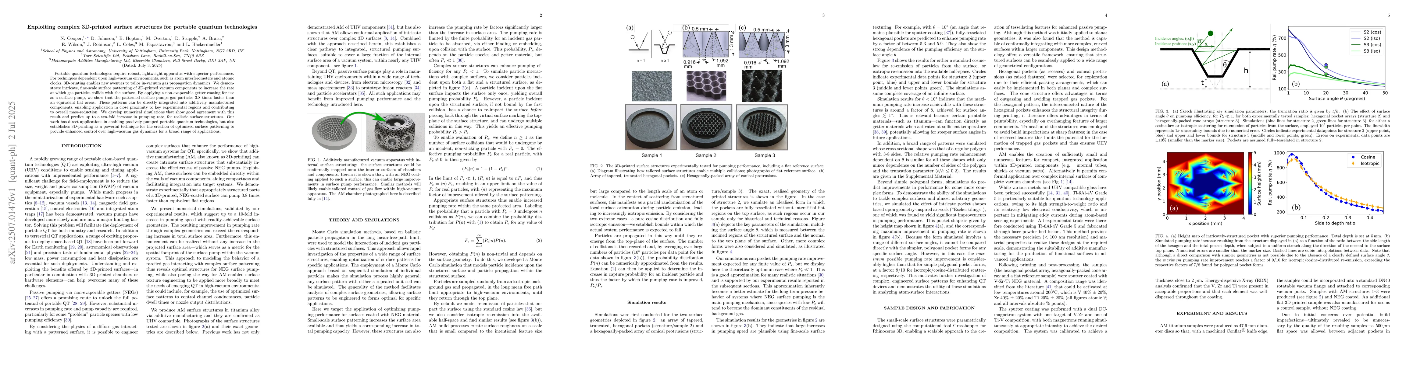 Portable quantum technologies require robust, lightweight apparatus with superior performance. For techniques dependent upon high-vacuum environments, such as atom interferometers and atomic clocks, 3D-printing enables new avenues to tailor in-vacuum gas propagation dynamics. We demonstrate intricate, fine-scale surface patterning of 3D-printed vacuum components to increase the rate at which gas particles collide with the surface. By applying a non-evaporable getter coating for use as a surface pump, we show that the patterned surface pumps gas particles 3.8 times faster than an equivalent flat areas. These patterns can be directly integrated into additively manufactured components, enabling application in close proximity to key experimental regions and contributing to overall mass-reduction. We develop numerical simulations that show good agreement with this result and predict up to a ten-fold increase in pumping rate, for realistic surface structures. Our work has direct applications in enabling passively-pumped portable quantum technologies, but also establishes 3D-printing as a powerful technique for the creation of optimized surface patterning to provide enhanced control over high-vacuum gas dynamics for a broad range of applications.