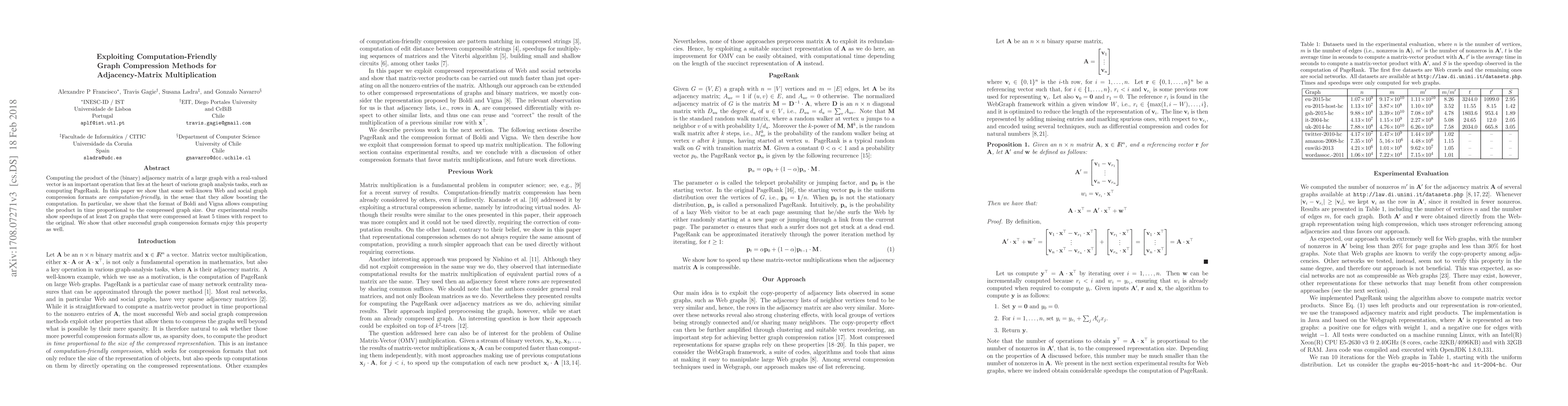 This paper demonstrates that certain graph compression methods, notably the Boldi and Vigna format, enable computation-friendly matrix-vector products, achieving significant speedups of at least 2x compared to uncompressed graphs, even when compressed by a factor of 5 or more.
