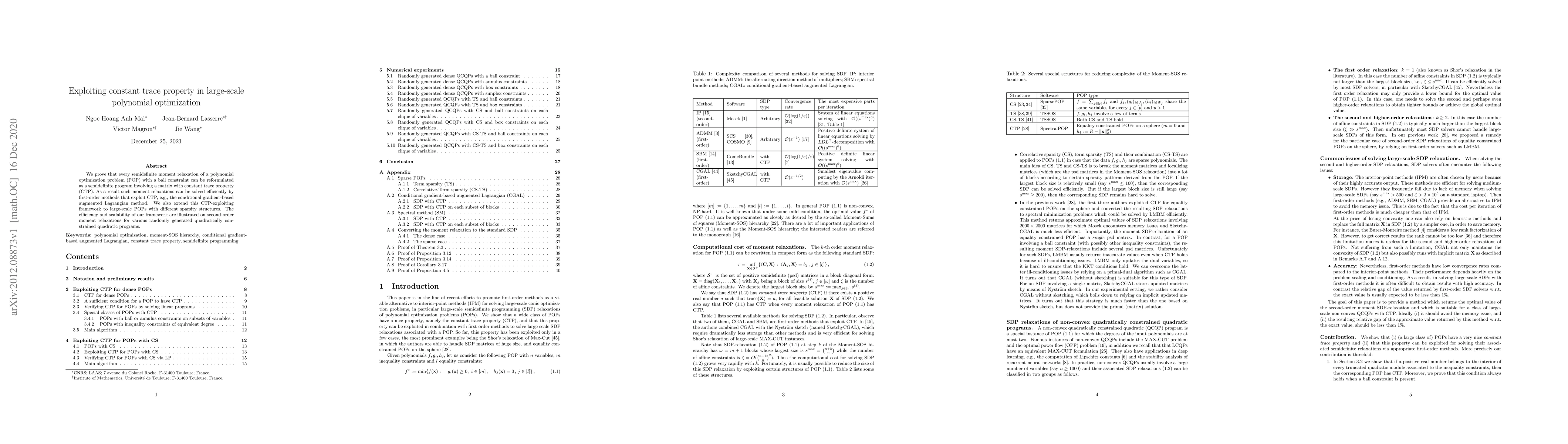 We prove that every semidefinite moment relaxation of a polynomial optimization problem (POP) with a ball constraint can be reformulated as a semidefinite program involving a matrix with constant trace property (CTP). As a result such moment relaxations can be solved efficiently by first-order methods that exploit CTP, e.g., the conditional gradient-based augmented Lagrangian method. We also extend this CTP-exploiting framework to large-scale POPs with different sparsity structures. The efficiency and scalability of our framework are illustrated on second-order moment relaxations for various randomly generated quadratically constrained quadratic programs.