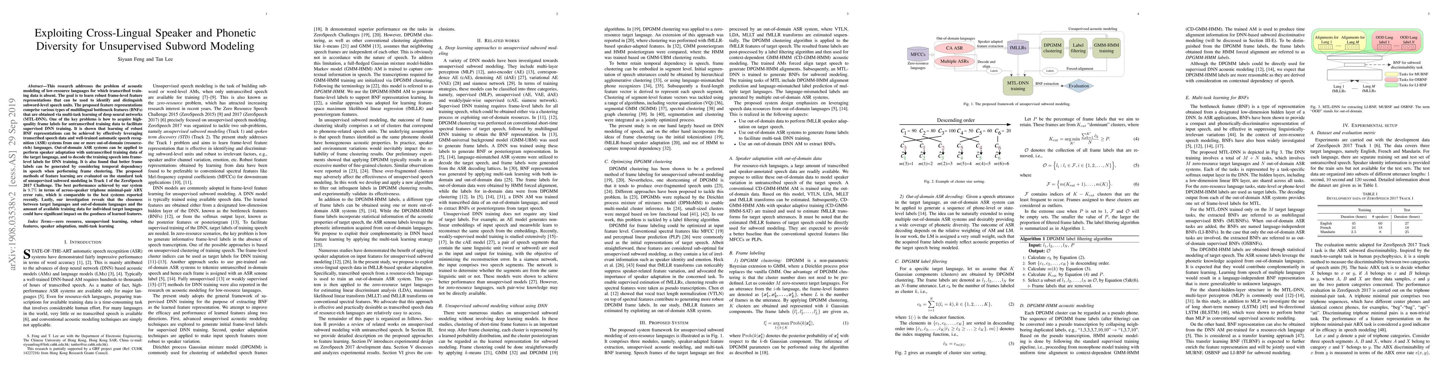 This research addresses the problem of acoustic modeling of low-resource languages for which transcribed training data is absent. The goal is to learn robust frame-level feature representations that can be used to identify and distinguish subword-level speech units. The proposed feature representations comprise various types of multilingual bottleneck features (BNFs) that are obtained via multi-task learning of deep neural networks (MTL-DNN). One of the key problems is how to acquire high-quality frame labels for untranscribed training data to facilitate supervised DNN training. It is shown that learning of robust BNF representations can be achieved by effectively leveraging transcribed speech data and well-trained automatic speech recognition (ASR) systems from one or more out-of-domain (resource-rich) languages. Out-of-domain ASR systems can be applied to perform speaker adaptation with untranscribed training data of the target language, and to decode the training speech into frame-level labels for DNN training. It is also found that better frame labels can be generated by considering temporal dependency in speech when performing frame clustering. The proposed methods of feature learning are evaluated on the standard task of unsupervised subword modeling in Track 1 of the ZeroSpeech 2017 Challenge. The best performance achieved by our system is $9.7\%$ in terms of across-speaker triphone minimal-pair ABX error rate, which is comparable to the best systems reported recently. Lastly, our investigation reveals that the closeness between target languages and out-of-domain languages and the amount of available training data for individual target languages could have significant impact on the goodness of learned features.