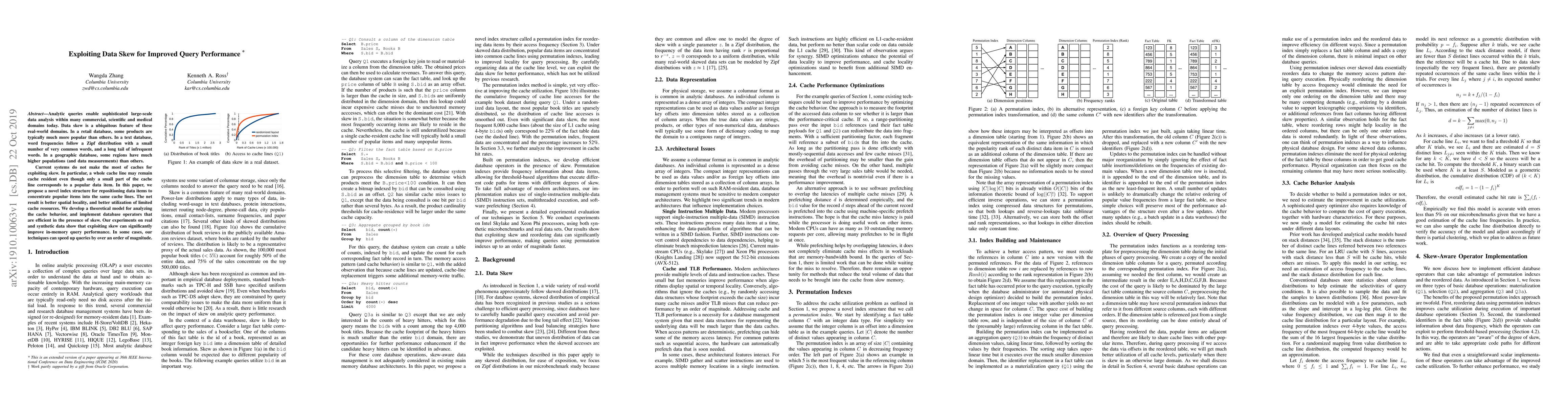 Analytic queries enable sophisticated large-scale data analysis within many commercial, scientific and medical domains today. Data skew is a ubiquitous feature of these real-world domains. In a retail database, some products are typically much more popular than others. In a text database, word frequencies follow a Zipf distribution with a small number of very common words, and a long tail of infrequent words. In a geographic database, some regions have much higher populations (and data measurements) than others. Current systems do not make the most of caches for exploiting skew. In particular, a whole cache line may remain cache resident even though only a small part of the cache line corresponds to a popular data item. In this paper, we propose a novel index structure for repositioning data items to concentrate popular items into the same cache lines. The net result is better spatial locality, and better utilization of limited cache resources. We develop a theoretical model for analyzing the cache behavior, and implement database operators that are efficient in the presence of skew. Our experiments on real and synthetic data show that exploiting skew can significantly improve in-memory query performance. In some cases, our techniques can speed up queries by over an order of magnitude.