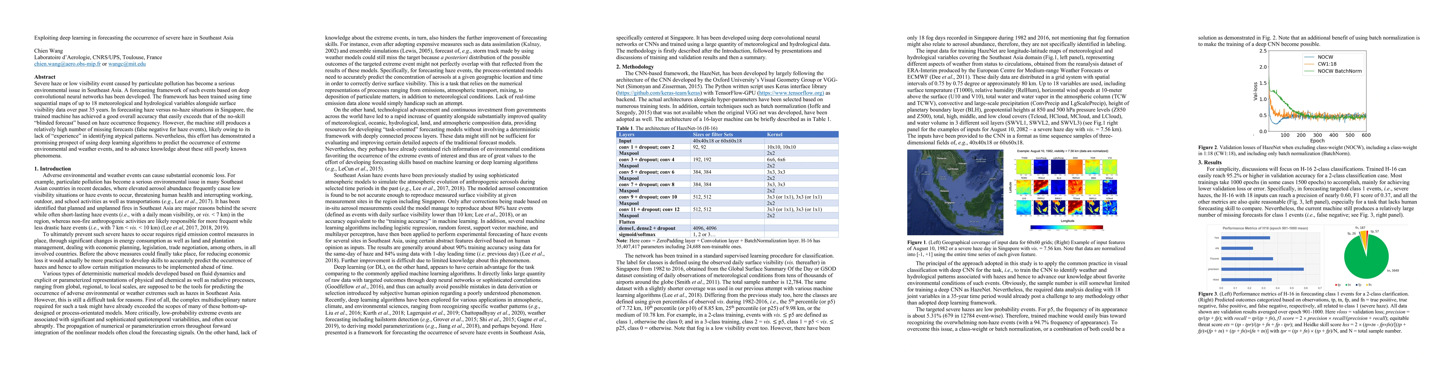 Severe haze or low visibility event caused by particulate pollution has become a serious environmental issue in Southeast Asia. A forecasting framework of such events based on deep convolutional neural networks has been developed. The framework has been trained using time sequential maps of up to 18 meteorological and hydrological variables alongside surface visibility data over past 35 years. In forecasting haze versus no-haze situations in Singapore, the trained machine has achieved a good overall accuracy that easily exceeds that of the no-skill blinded forecast based on haze occurrence frequency. However, the machine still produces a relatively high number of missing forecasts (false negative for haze events), likely owing to its lack of experience in identifying atypical patterns. Nevertheless, this effort has demonstrated a promising prospect of using deep learning algorithms to predict the occurrence of extreme environmental and weather events, and to advance knowledge about these still poorly known phenomena.