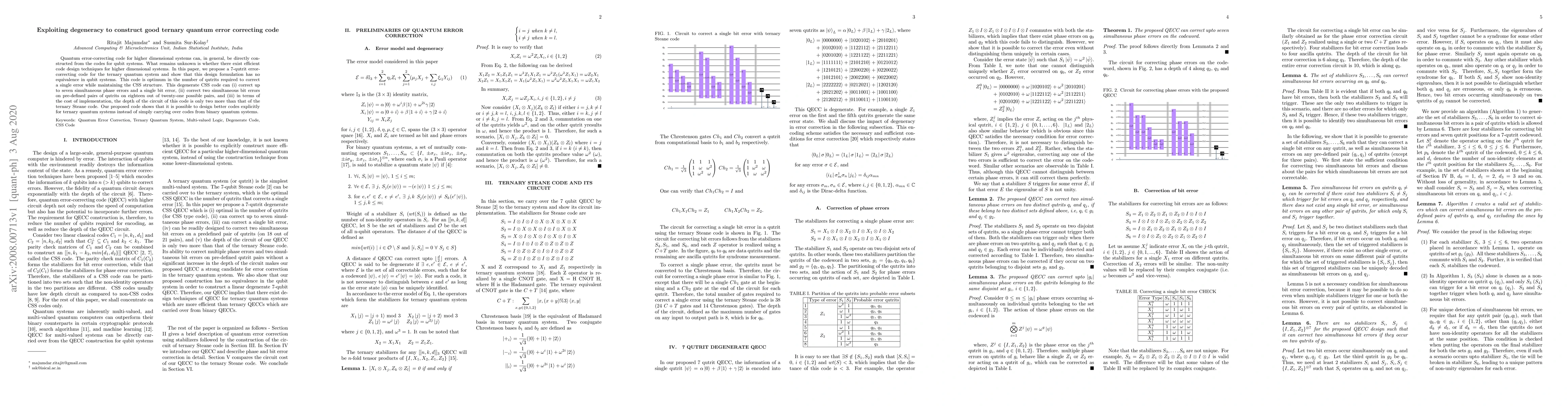 Quantum error-correcting code for higher dimensional systems can, in general, be directly constructed from the codes for qubit systems. What remains unknown is whether there exist efficient code design techniques for higher dimensional systems. In this paper, we propose a 7-qutrit error-correcting code for the ternary quantum system and show that this design formulation has no equivalence in qubit systems. This code is optimum in the number of qutrits required to correct a single error while maintaining the CSS structure. This degenerate CSS code can (i) correct up to seven simultaneous phase errors and a single bit error, (ii) correct two simultaneous bit errors on pre-defined pairs of qutrits on eighteen out of twenty-one possible pairs, and (iii) in terms of the cost of implementation, the depth of the circuit of this code is only two more than that of the ternary Steane code. Our proposed code shows that it is possible to design better codes explicitly for ternary quantum systems instead of simply carrying over codes from binary quantum systems.