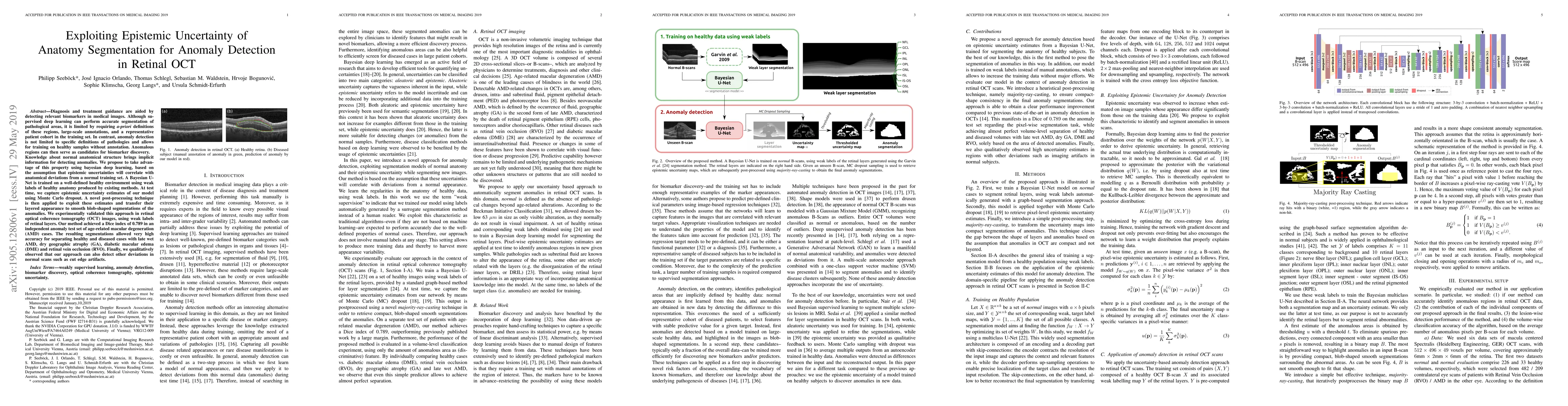 This paper proposes a Bayesian deep learning approach to detect anomalies in retinal OCT images by exploiting epistemic uncertainty in anatomy segmentation. The method uses a Bayesian U-Net trained on healthy samples and a novel post-processing technique to convert uncertainty estimates into smooth anomaly segmentations, achieving a Dice index of 0.789 in detecting various retinal diseases.
