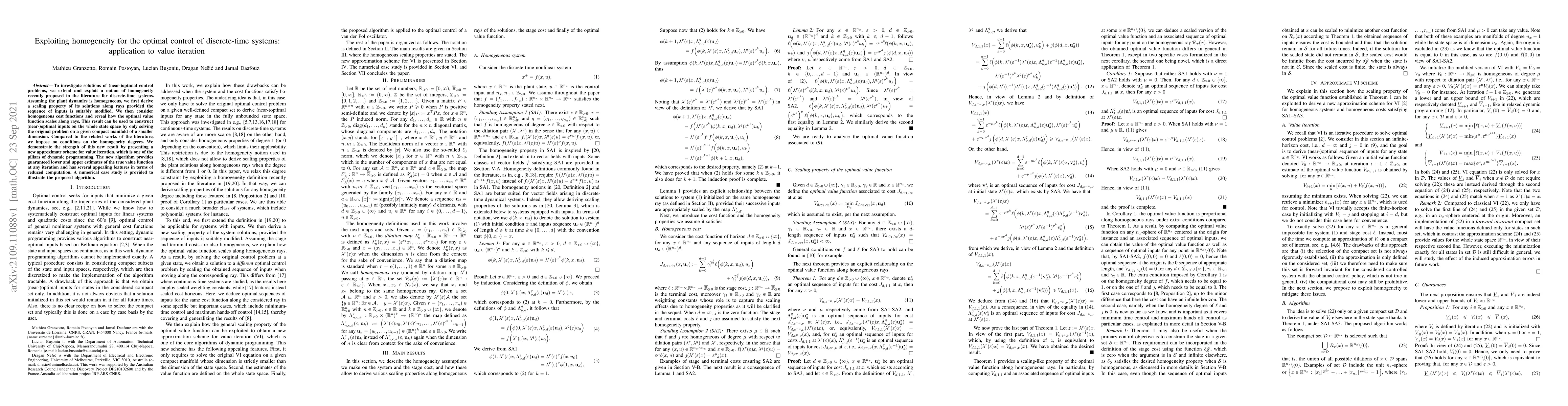 To investigate solutions of (near-)optimal control problems, we extend and exploit a notion of homogeneity recently proposed in the literature for discrete-time systems. Assuming the plant dynamics is homogeneous, we first derive a scaling property of its solutions along rays provided the sequence of inputs is suitably modified. We then consider homogeneous cost functions and reveal how the optimal value function scales along rays. This result can be used to construct (near-)optimal inputs on the whole state space by only solving the original problem on a given compact manifold of a smaller dimension. Compared to the related works of the literature, we impose no conditions on the homogeneity degrees. We demonstrate the strength of this new result by presenting a new approximate scheme for value iteration, which is one of the pillars of dynamic programming. The new algorithm provides guaranteed lower and upper estimates of the true value function at any iteration and has several appealing features in terms of reduced computation. A numerical case study is provided to illustrate the proposed algorithm.