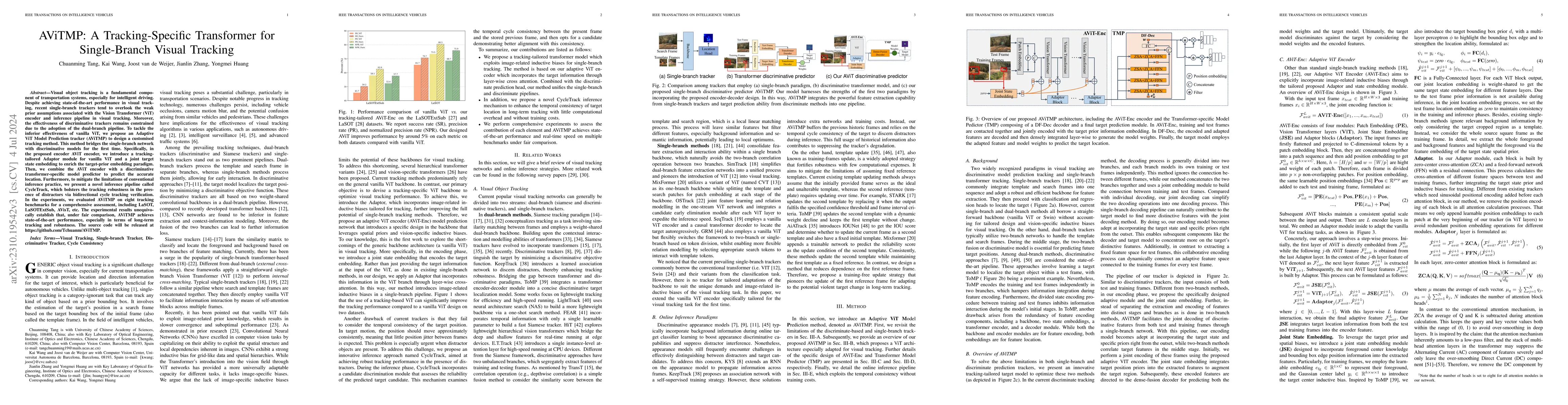 The paper proposes an Adaptive ViT Model Prediction tracker (AViTMP) to enhance single-branch visual tracking performance by integrating an adaptor module and joint target state embedding into the Vision Transformer encoder. The method also introduces a novel CycleTrack inference pipeline to improve robustness against distractors and a dual-frame update strategy for long-term tracking, achieving state-of-the-art results on multiple benchmarks.