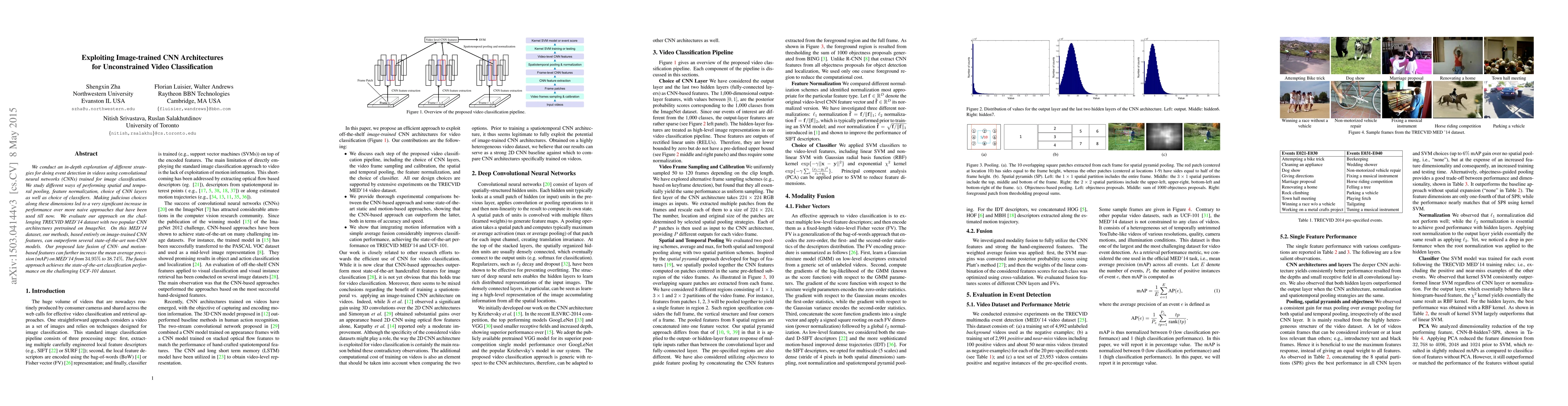 This paper investigates strategies to enhance video event detection using image-trained CNN architectures, achieving significant performance improvements through spatial and temporal pooling, feature normalization, and classifier selection. The proposed late fusion of CNN and motion-based features outperforms state-of-the-art non-CNN models on the TRECVID MED'14 dataset and achieves the best results on the UCF-101 dataset.