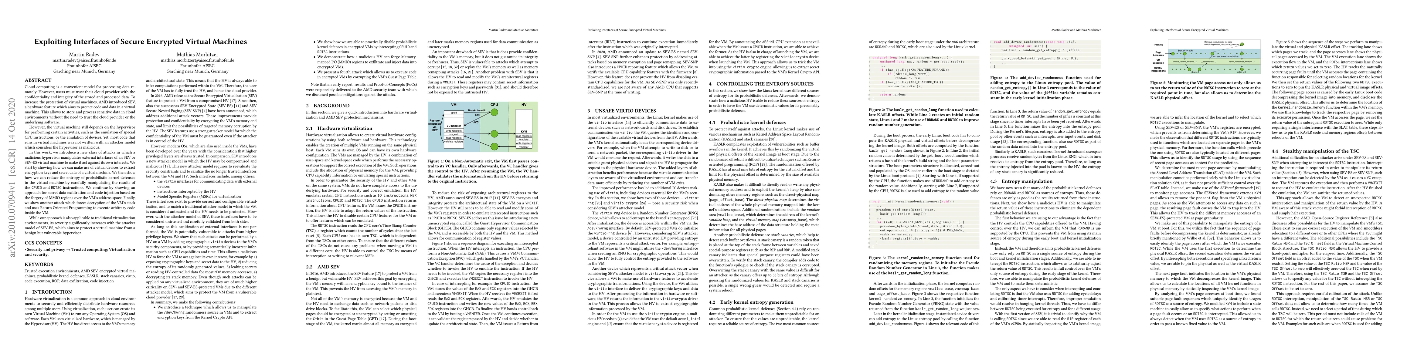 This paper explores new attack vectors targeting the interfaces of secure encrypted virtual machines (SEV and SEV-ES) in cloud environments, demonstrating how malicious hypervisors can manipulate external interfaces to extract encryption keys, reduce kernel defenses, and exfiltrate secret data. The attacks highlight vulnerabilities in SEV-ES, which aims to protect against benign but vulnerable hypervisors.