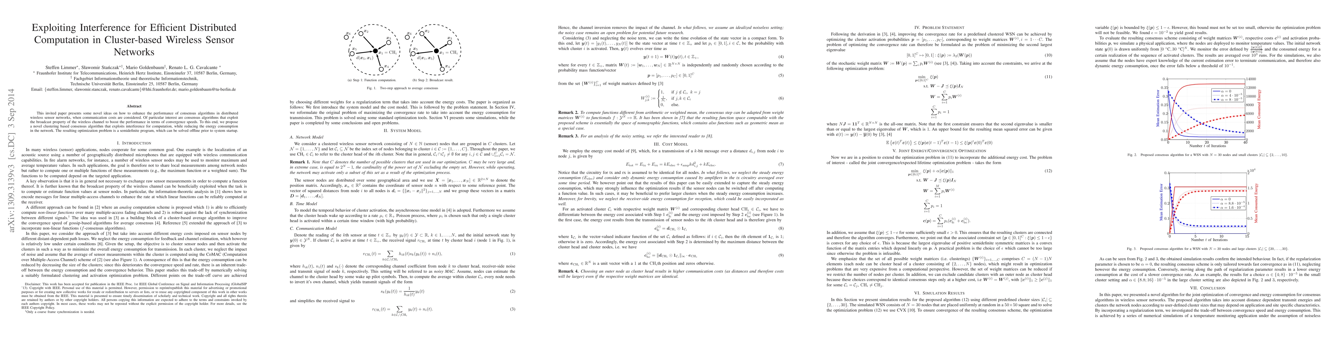This invited paper presents some novel ideas on how to enhance the performance of consensus algorithms in distributed wireless sensor networks, when communication costs are considered. Of particular interest are consensus algorithms that exploit the broadcast property of the wireless channel to boost the performance in terms of convergence speeds. To this end, we propose a novel clustering based consensus algorithm that exploits interference for computation, while reducing the energy consumption in the network. The resulting optimization problem is a semidefinite program, which can be solved offline prior to system startup.