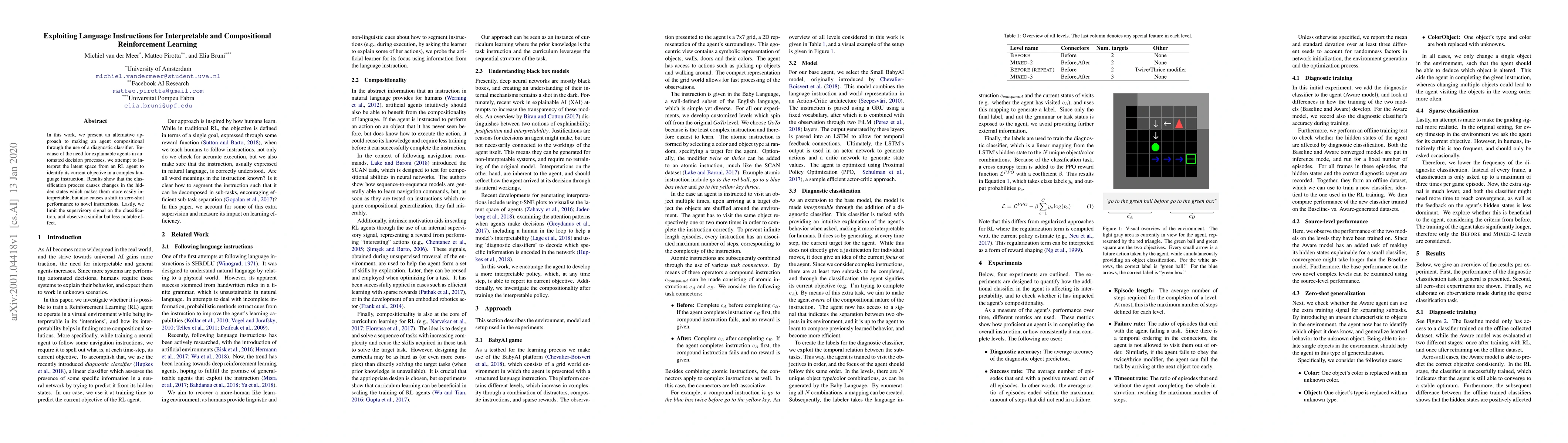 In this work, we present an alternative approach to making an agent compositional through the use of a diagnostic classifier. Because of the need for explainable agents in automated decision processes, we attempt to interpret the latent space from an RL agent to identify its current objective in a complex language instruction. Results show that the classification process causes changes in the hidden states which makes them more easily interpretable, but also causes a shift in zero-shot performance to novel instructions. Lastly, we limit the supervisory signal on the classification, and observe a similar but less notable effect.