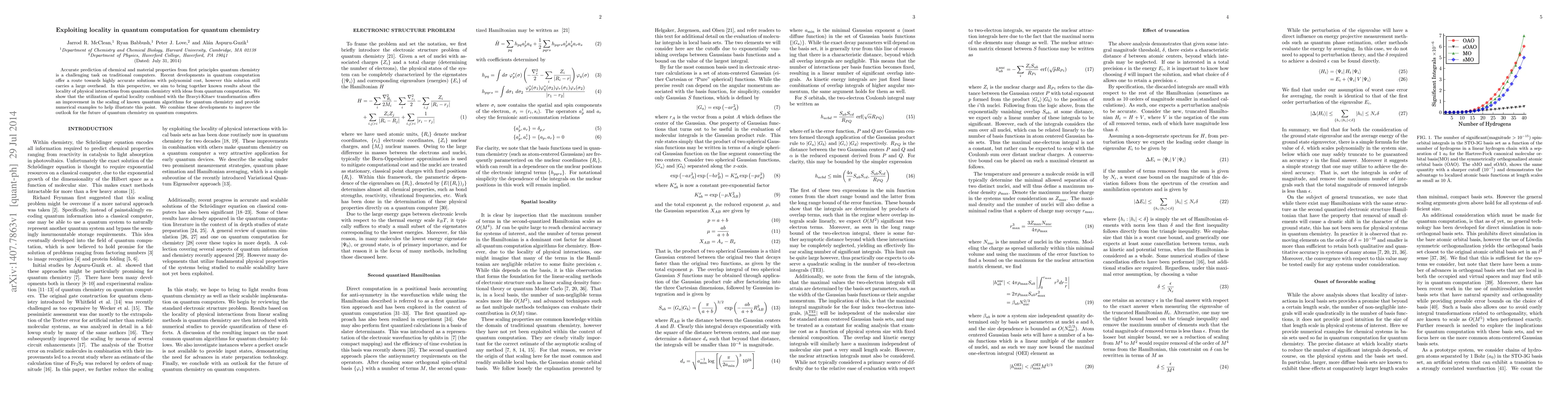 This paper explores leveraging spatial locality in quantum computation to enhance the efficiency of quantum chemistry algorithms, proposing that the Bravyi-Kitaev transformation can improve the scaling of known quantum algorithms, thus offering a promising path for future quantum chemistry on quantum computers. Numerical examples demonstrate the potential improvements achieved through these techniques.