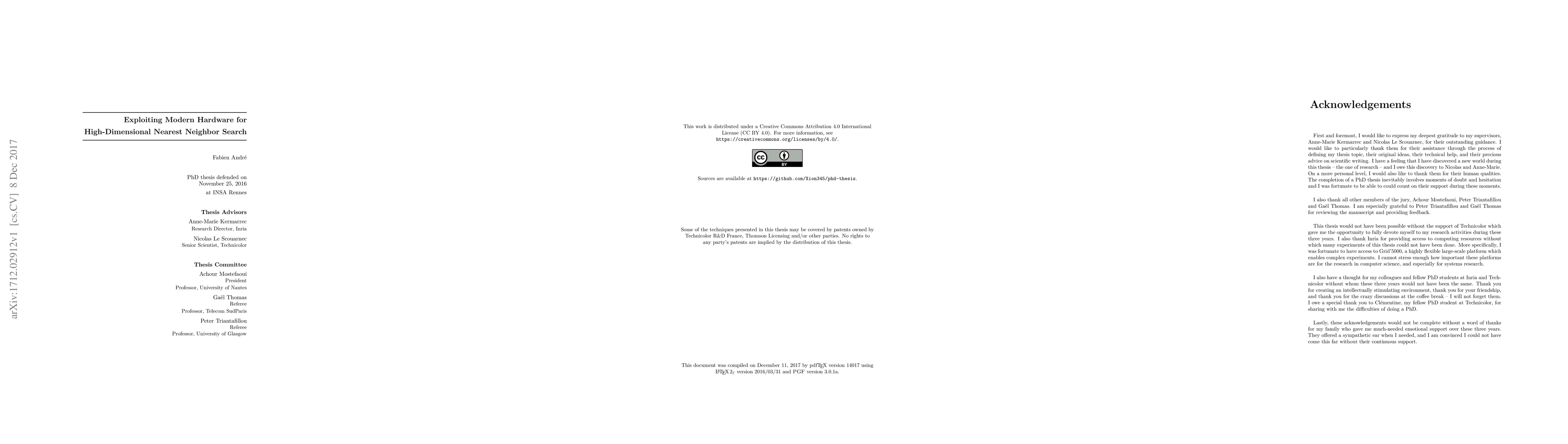 This paper explores efficient high-dimensional nearest neighbor search techniques using product quantization, focusing on leveraging modern CPU capabilities like SIMD and cache hierarchy to enhance search speed for large multimedia databases. The proposed methods aim to significantly reduce response times for large-scale applications.