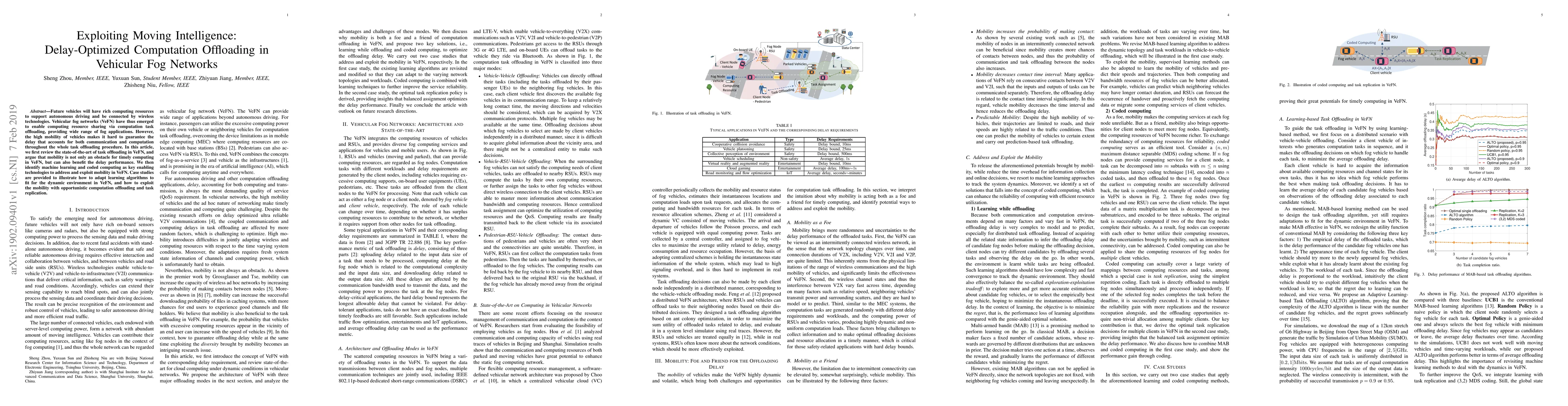 This paper reviews task offloading in vehicular fog networks (VeFN) and argues that vehicle mobility, while challenging, can enhance delay performance. It proposes machine learning and coded computing as key technologies to leverage mobility, with case studies demonstrating adaptive learning algorithms and opportunistic computation offloading.
