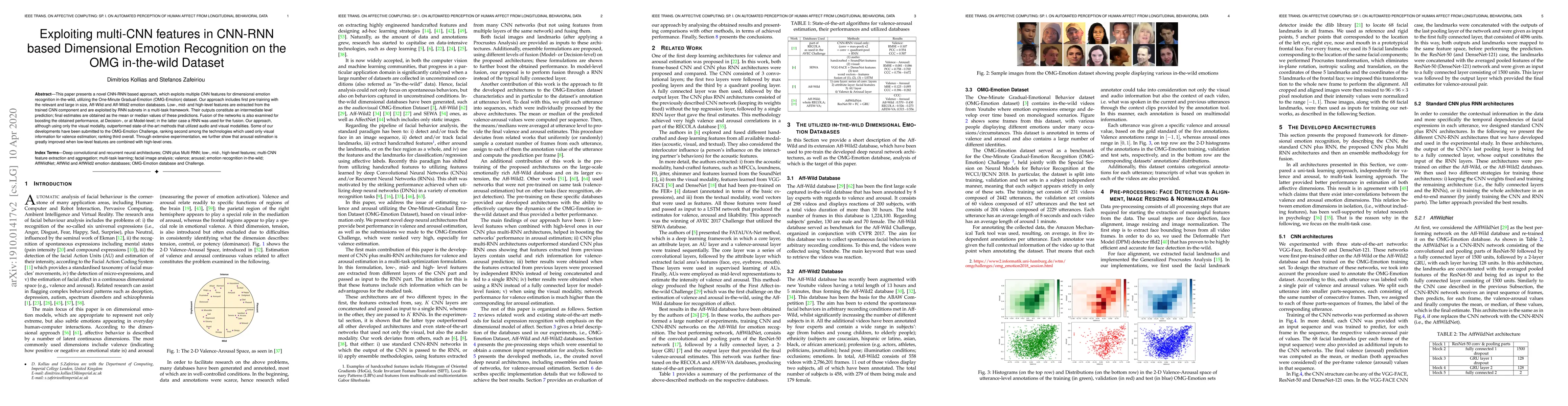 This paper introduces a CNN-RNN model leveraging multi-CNN features for dimensional emotion recognition using the OMG-Emotion dataset, achieving top rankings in visual-only valence estimation and overall performance. The approach combines low-, mid-, and high-level CNN features with RNN subnets, showing improved arousal estimation through feature fusion.