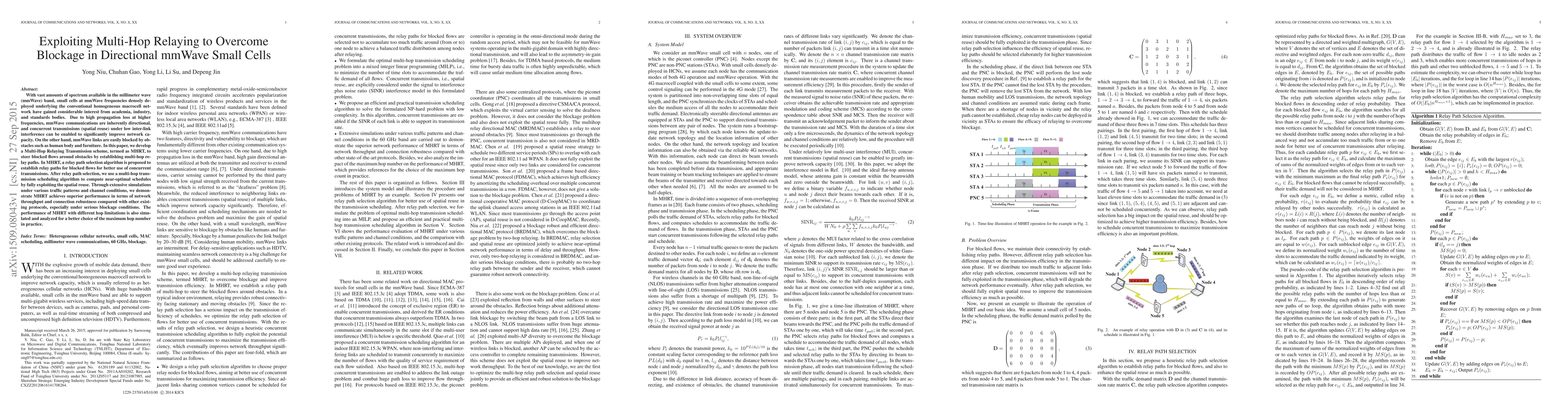 This paper proposes a Multi-Hop Relaying Transmission (MHRT) scheme to navigate blocked flows in directional mmWave small cells by utilizing relay paths around obstacles. The MHRT scheme employs relay path selection and scheduling algorithms to optimize spatial reuse and achieve higher network throughput and robustness, especially under severe blockage conditions.