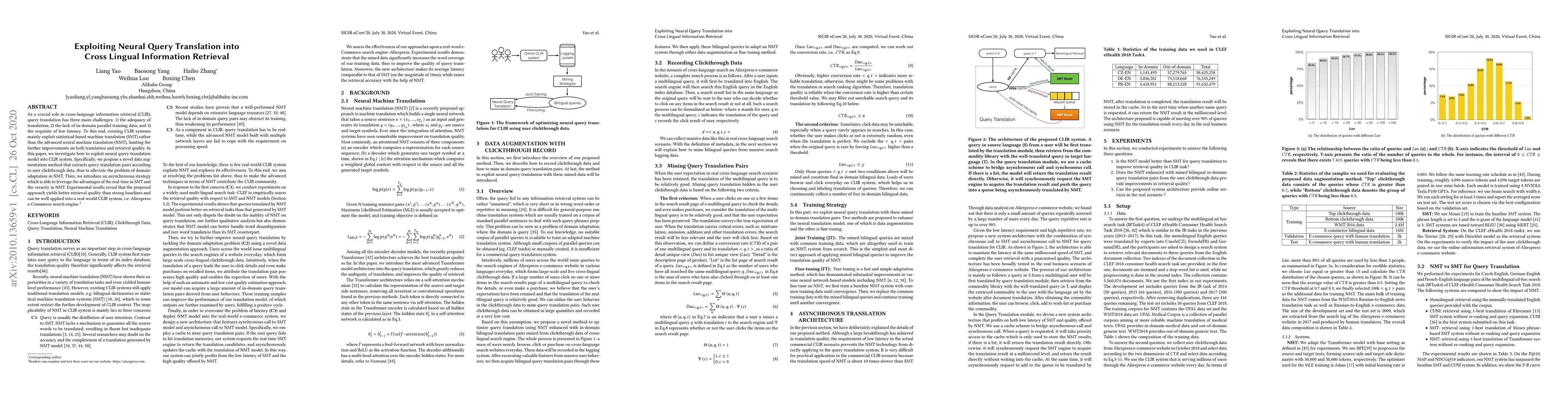 This paper proposes a novel method to enhance cross-lingual information retrieval (CLIR) by leveraging neural query translation models, addressing challenges like translation adequacy, data scarcity, and low latency. The approach includes data augmentation and an asynchronous strategy to improve retrieval quality, outperforming existing statistical-based methods.