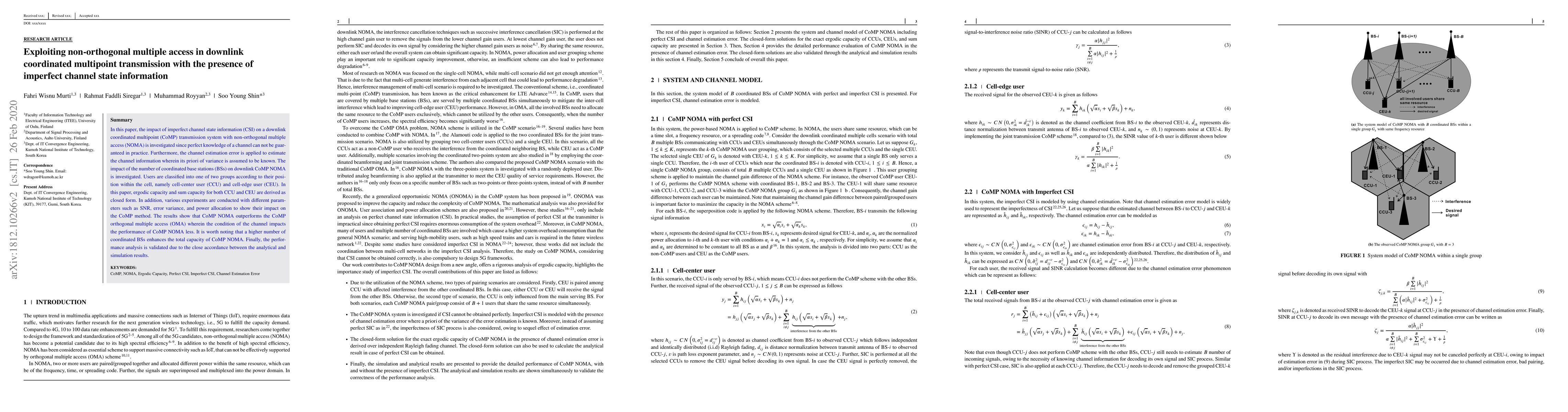 This paper investigates the impact of imperfect channel state information on downlink coordinated multipoint transmission using non-orthogonal multiple access. It derives ergodic and sum capacity for cell-center and cell-edge users, showing that CoMP NOMA outperforms CoMP OMA, especially with more coordinated base stations.