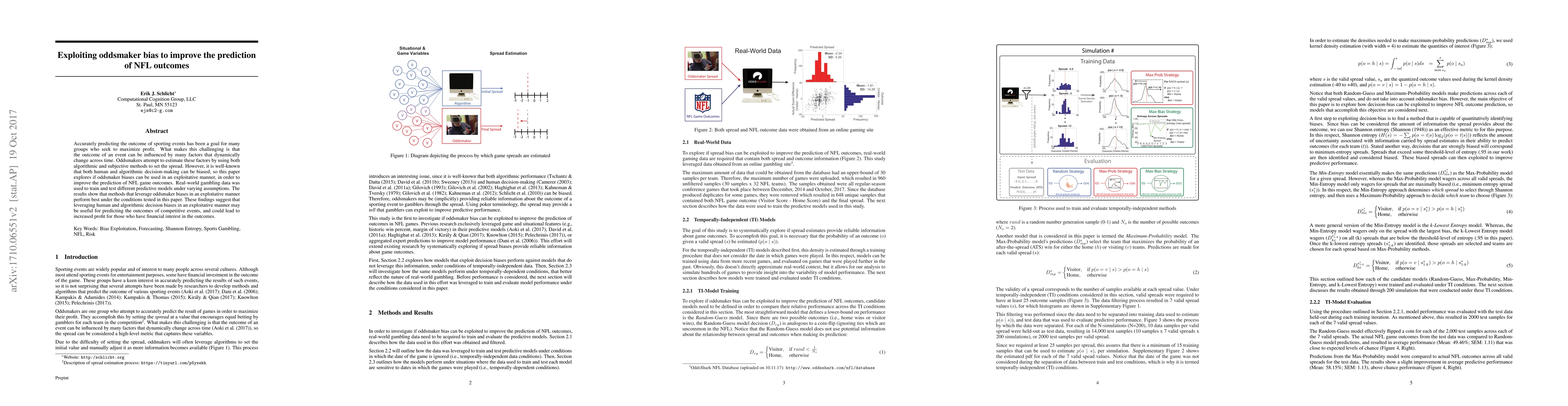 Accurately predicting the outcome of sporting events has been a goal for many groups who seek to maximize profit. What makes this challenging is that the outcome of an event can be influenced by many factors that dynamically change across time. Oddsmakers attempt to estimate these factors by using both algorithmic and subjective methods to set the spread. However, it is well-known that both human and algorithmic decision-making can be biased, so this paper explores if oddsmaker biases can be used in an exploitative manner, in order to improve the prediction of NFL game outcomes. Real-world gambling data was used to train and test different predictive models under varying assumptions. The results show that methods that leverage oddsmaker biases in an exploitative manner perform best under the conditions tested in this paper. These findings suggest that leveraging human and algorithmic decision biases in an exploitative manner may be useful for predicting the outcomes of competitive events, and could lead to increased profit for those who have financial interest in the outcomes.