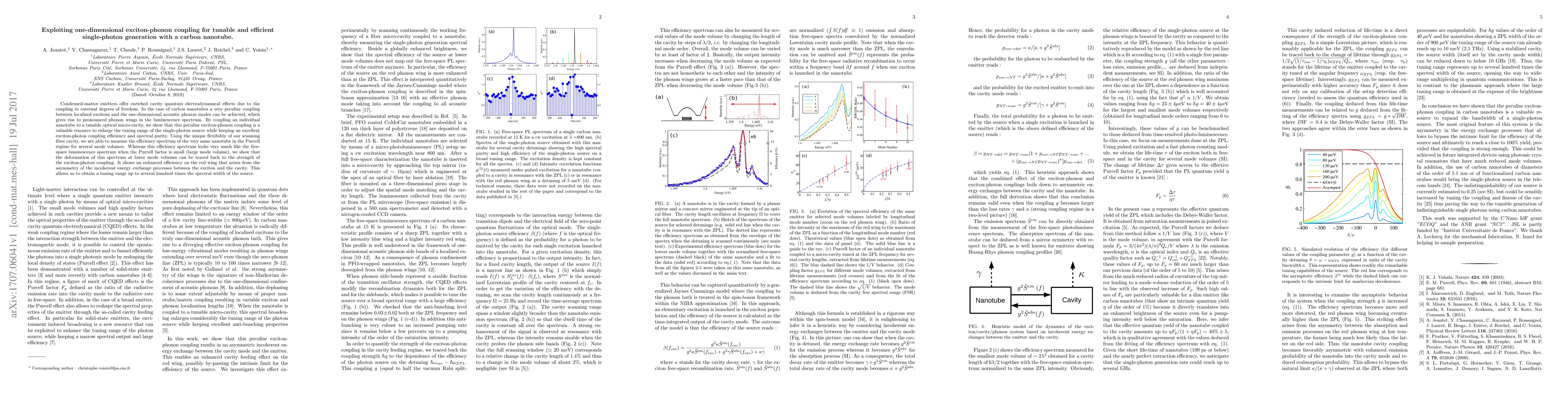This paper demonstrates how one-dimensional exciton-phonon coupling in carbon nanotubes can be exploited to enhance tunable and efficient single-photon generation. By coupling a nanotube to a tunable optical micro-cavity, the researchers achieve a broad tuning range while maintaining high exciton-photon coupling efficiency and spectral purity.