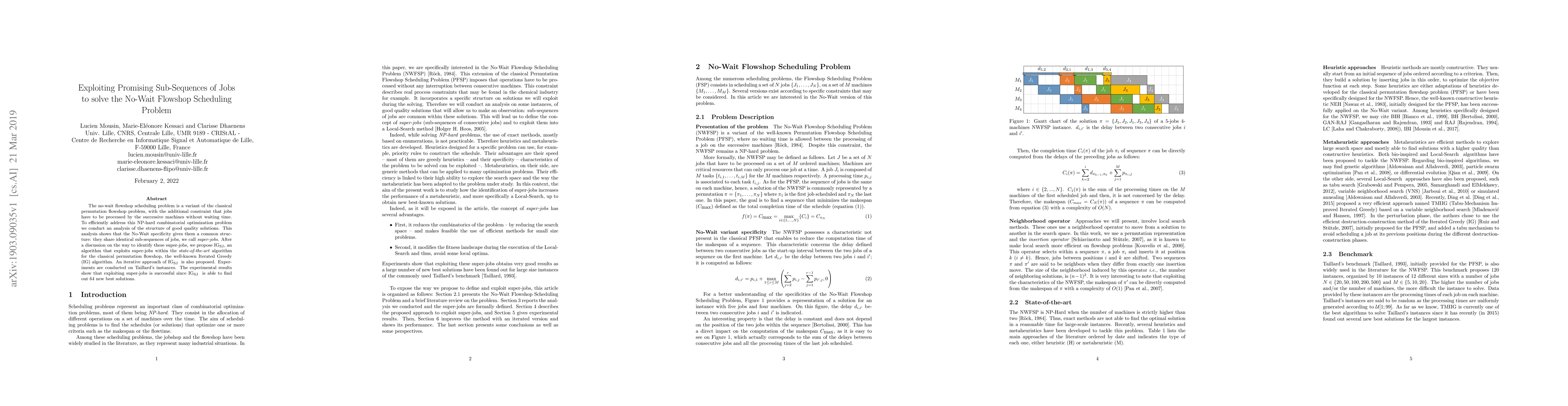 The no-wait flowshop scheduling problem is a variant of the classical permutation flowshop problem, with the additional constraint that jobs have to be processed by the successive machines without waiting time. To efficiently address this NP-hard combinatorial optimization problem we conduct an analysis of the structure of good quality solutions. This analysis shows that the No-Wait specificity gives them a common structure: they share identical sub-sequences of jobs, we call super-jobs. After a discussion on the way to identify these super-jobs, we propose IG-SJ, an algorithm that exploits super-jobs within the state-of-the-art algorithm for the classical permutation flowshop, the well-known Iterated Greedy (IG) algorithm. An iterative approach of IG-SJ is also proposed. Experiments are conducted on Taillard's instances. The experimental results show that exploiting super-jobs is successful since IG-SJ is able to find 64 new best solutions.