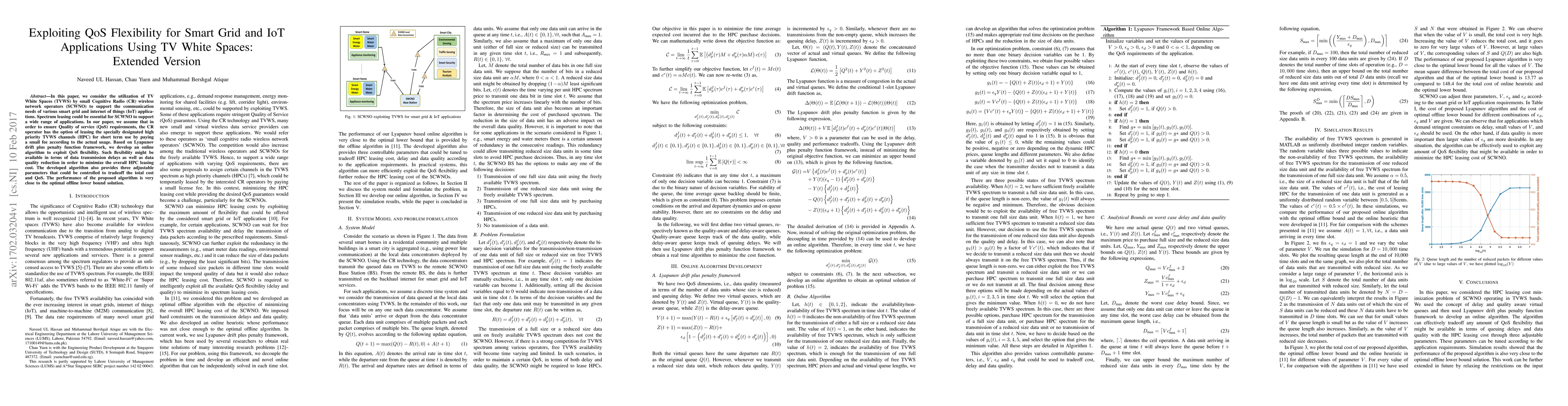 In this paper, we consider the utilization of TV White Spaces (TVWS) by small Cognitive Radio (CR) wireless network operators (SCWNO) to support the communication needs of various smart grid and internet of things (IoT) applications. Spectrum leasing could be essential for SCWNO to support a wide range of applications. In our paper, we assume that in order to ensure Quality of service (QoS) requirements, the CR operator has the option of leasing the specially designated high priority TVWS channels (HPC) for short term use by paying a small fee according to the actual usage. Based on Lyapunov drift plus penalty function framework, we develop an online algorithm to exploit QoS flexibility. Such flexibility might be available in terms of data transmission delays as well as data quality reduction in order to minimize the overall HPC leasing cost. The developed algorithm also provides three adjustable parameters that could be controlled to tradeoff the total cost and QoS. The performance of the proposed algorithm is very close to the optimal offline lower bound solution.