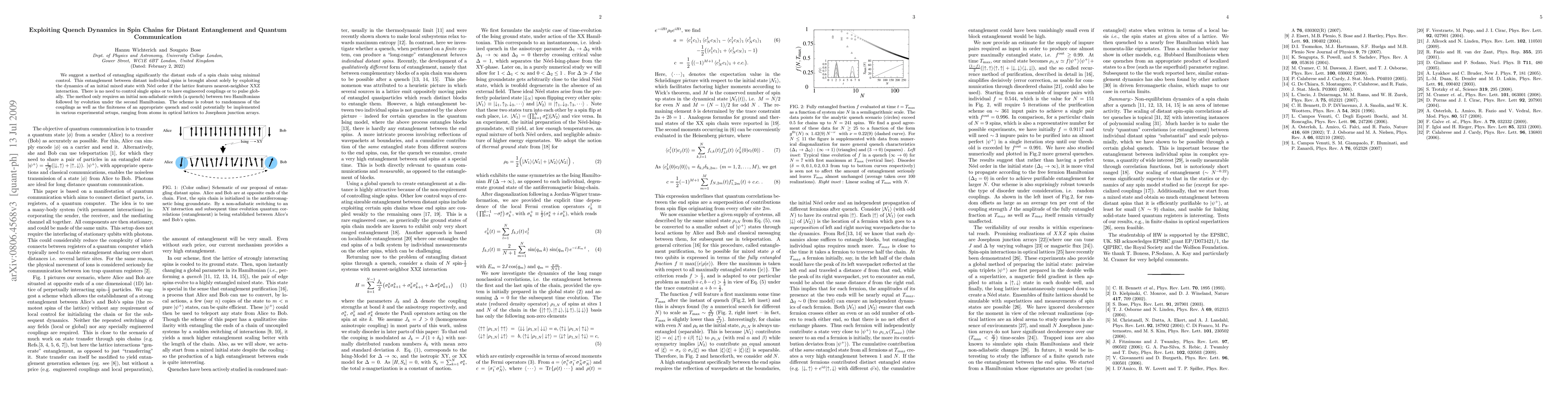 We suggest a method of entangling significantly the distant ends of a spin chain using minimal control. This entanglement between distant individual spins is brought about solely by exploiting the dynamics of an initial mixed state with Neel order if the lattice features nearest-neighbor XXZ interaction. There is no need to control single spins or to have engineered couplings or to pulse globally. The method only requires an initial nonadiabatic switch (a quench) between two Hamiltonians followed by an evolution under the second Hamiltonian. The scheme is robust to randomness of the couplings as well as the finiteness of an appropriate quench and could potentially be implemented in various experimental setups, ranging from atoms in optical lattices to Josephson-junction arrays.