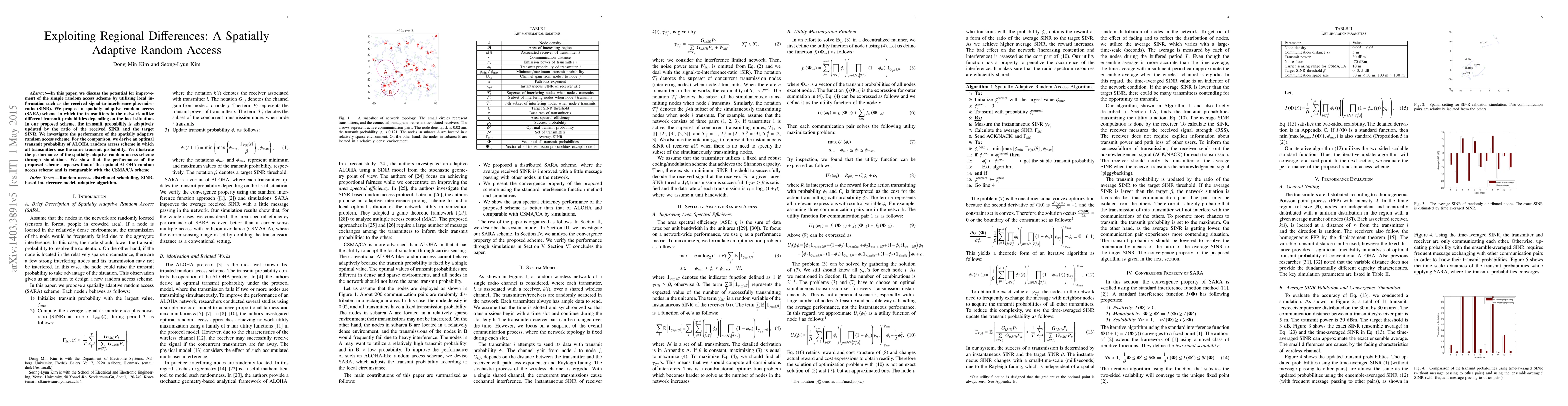 This paper proposes a spatially adaptive random access (SARA) scheme to enhance simple random access by utilizing local received signal-to-interference-plus-noise-ratio (SINR) information. The SARA scheme adaptively adjusts transmit probabilities based on SINR ratios, outperforming the optimal ALOHA scheme and rivaling CSMA/CA performance, as shown through simulations.