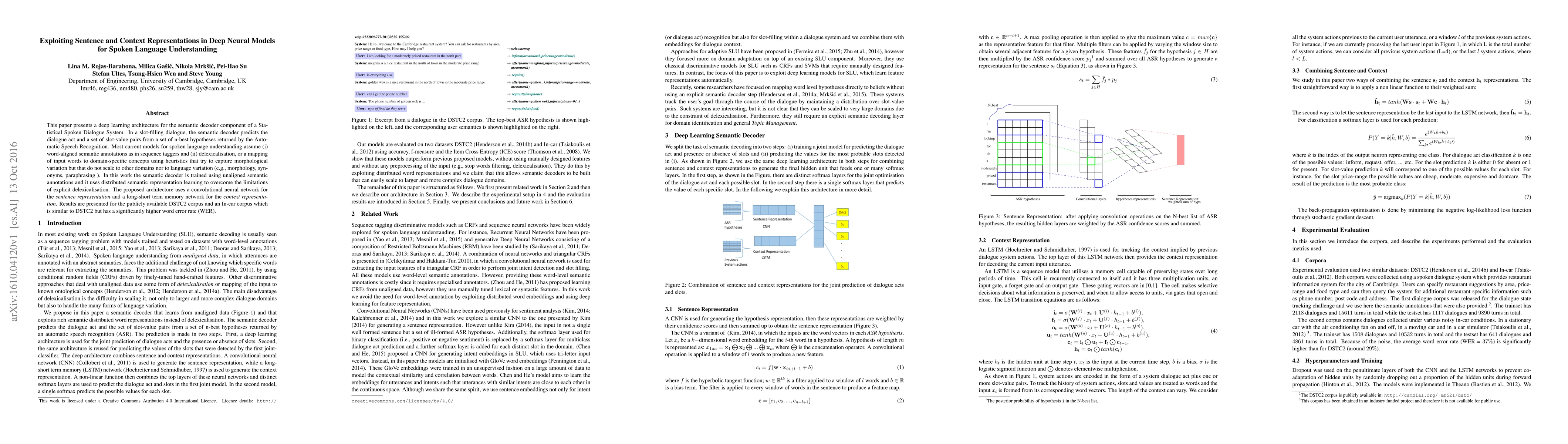 This paper proposes a deep learning architecture for spoken language understanding that uses unaligned semantic annotations and distributed representation learning to improve slot-filling dialogue systems. It achieves better results on publicly available datasets compared to existing methods.