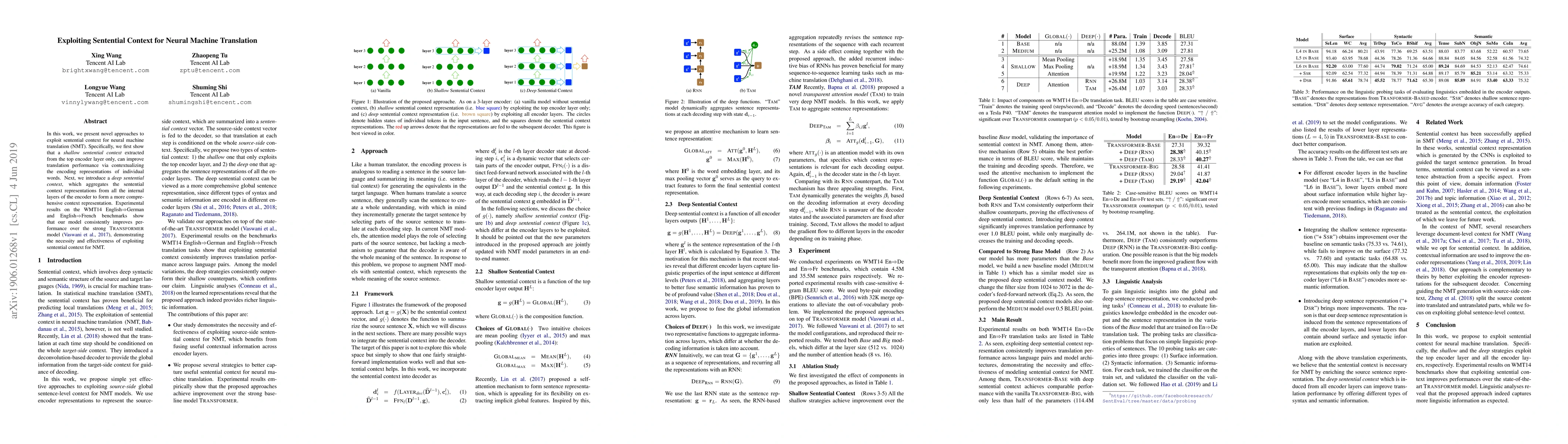 This paper proposes methods to enhance neural machine translation (NMT) by leveraging sentential context, showing that both shallow and deep context representations extracted from encoder layers can improve translation performance. Experimental results on WMT14 benchmarks indicate consistent performance gains over the TRANSFORMER model, underscoring the importance of sentential context in NMT.