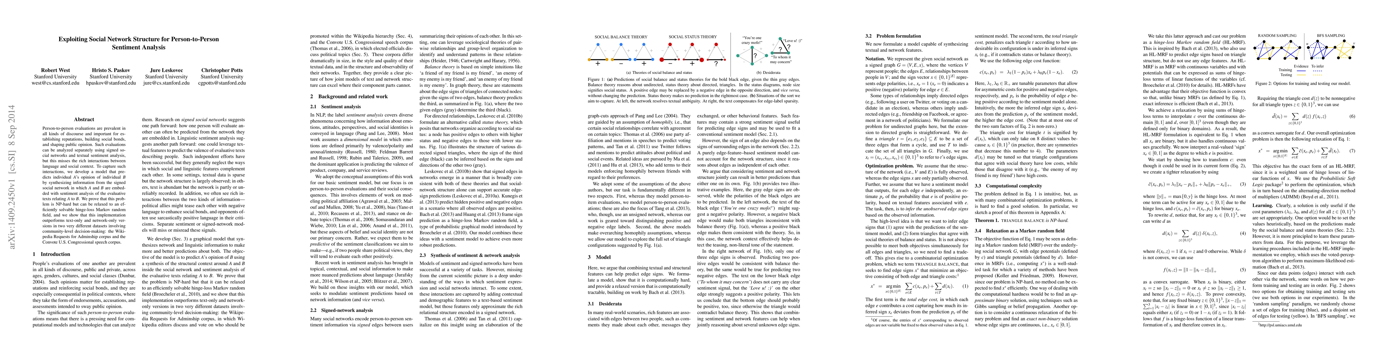 Researchers developed a model to analyze person-to-person sentiment by combining signed social networks with text-based evaluations, outperforming traditional approaches in two datasets.