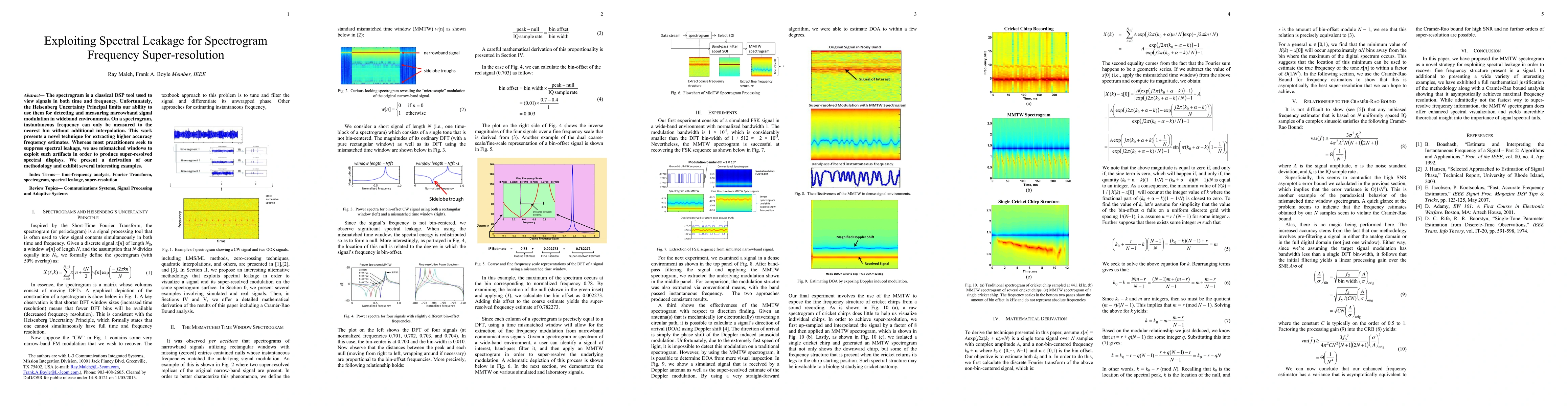 The spectrogram is a classical DSP tool used to view signals in both time and frequency. Unfortunately, the Heisenberg Uncertainty Principal limits our ability to use them for detecting and measuring narrowband signal modulation in wideband environments. On a spectrogram, instantaneous frequency can only be measured to the nearest bin without additional interpolation. This work presents a novel technique for extracting higher accuracy frequency estimates. Whereas most practitioners seek to suppress spectral leakage, we use mismatched windows to exploit such artifacts in order to produce super-resolved spectral displays. We present a derivation of our methodology and exhibit several interesting examples.