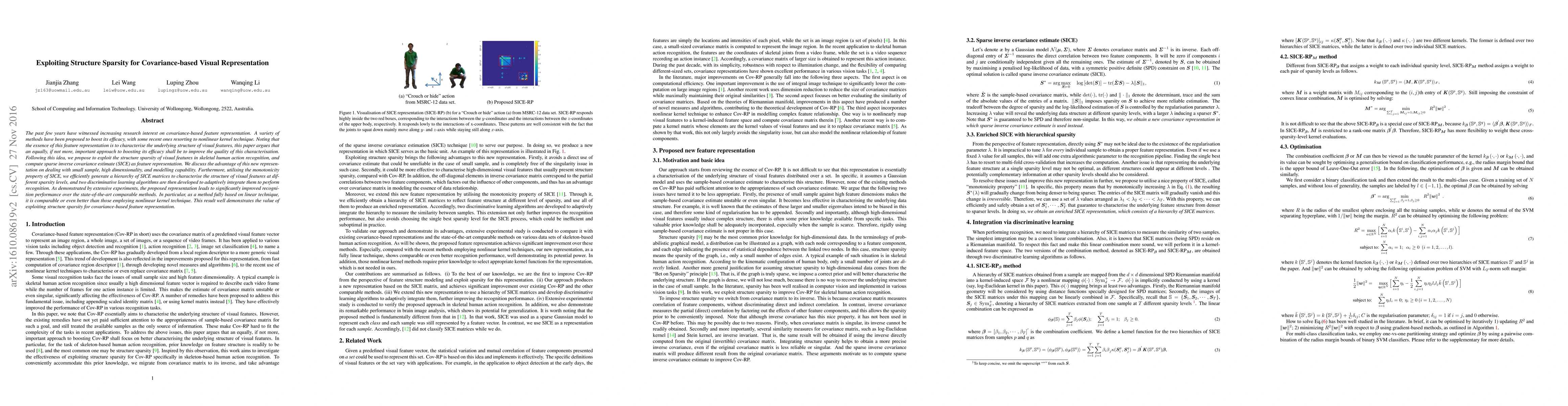 The paper proposes exploiting structure sparsity in visual features using Sparse Inverse Covariance Estimate (SICE) for feature representation, especially for skeletal human action recognition. It also introduces hierarchical SICE matrices and discriminative learning algorithms for adaptive integration.