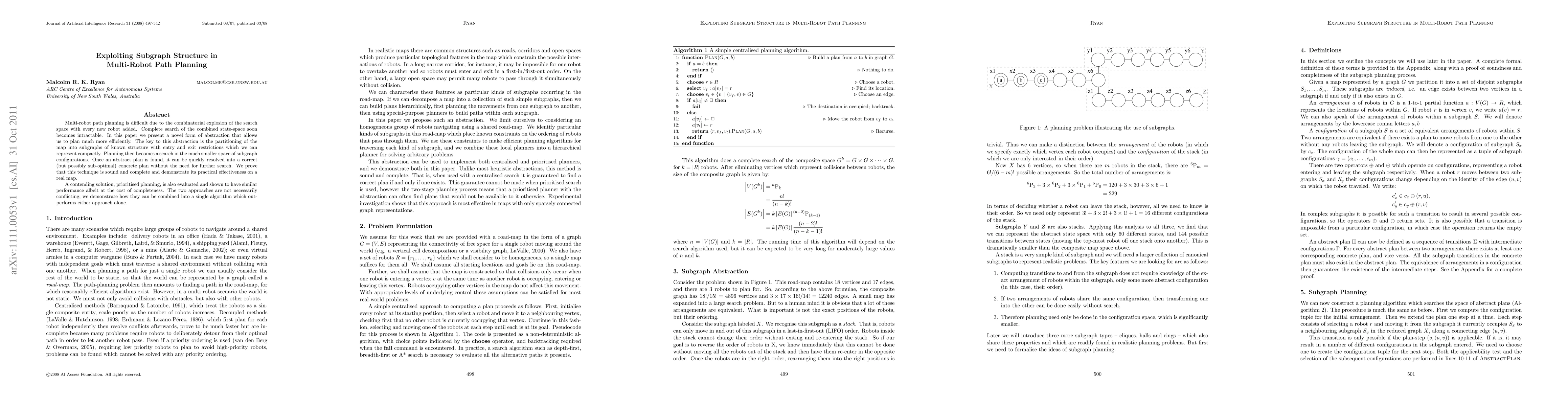 Multi-robot path planning is difficult due to the combinatorial explosion of the search space with every new robot added. Complete search of the combined state-space soon becomes intractable. In this paper we present a novel form of abstraction that allows us to plan much more efficiently. The key to this abstraction is the partitioning of the map into subgraphs of known structure with entry and exit restrictions which we can represent compactly. Planning then becomes a search in the much smaller space of subgraph configurations. Once an abstract plan is found, it can be quickly resolved into a correct (but possibly sub-optimal) concrete plan without the need for further search. We prove that this technique is sound and complete and demonstrate its practical effectiveness on a real map. A contending solution, prioritised planning, is also evaluated and shown to have similar performance albeit at the cost of completeness. The two approaches are not necessarily conflicting; we demonstrate how they can be combined into a single algorithm which outperforms either approach alone.
