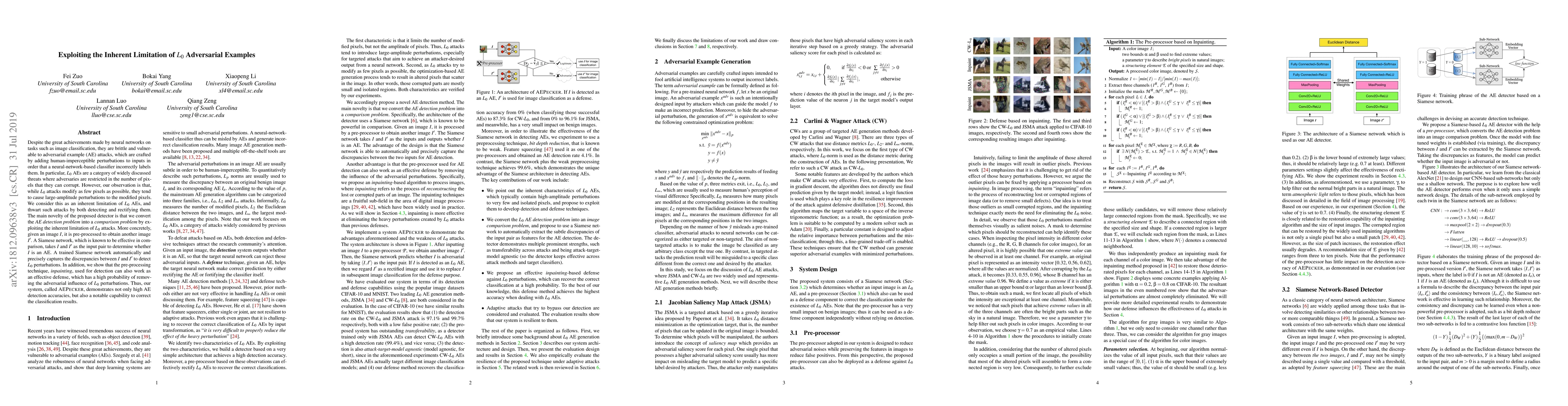 Despite the great achievements made by neural networks on tasks such as image classification, they are brittle and vulnerable to adversarial example (AE) attacks, which are crafted by adding human-imperceptible perturbations to inputs in order that a neural-network-based classifier incorrectly labels them. In particular, L0 AEs are a category of widely discussed threats where adversaries are restricted in the number of pixels that they can corrupt. However, our observation is that, while L0 attacks modify as few pixels as possible, they tend to cause large-amplitude perturbations to the modified pixels. We consider this as an inherent limitation of L0 AEs, and thwart such attacks by both detecting and rectifying them. The main novelty of the proposed detector is that we convert the AE detection problem into a comparison problem by exploiting the inherent limitation of L0 attacks. More concretely, given an image I, it is pre-processed to obtain another image I' . A Siamese network, which is known to be effective in comparison, takes I and I' as the input pair to determine whether I is an AE. A trained Siamese network automatically and precisely captures the discrepancies between I and I' to detect L0 perturbations. In addition, we show that the pre-processing technique, inpainting, used for detection can also work as an effective defense, which has a high probability of removing the adversarial influence of L0 perturbations. Thus, our system, called AEPECKER, demonstrates not only high AE detection accuracies, but also a notable capability to correct the classification results.