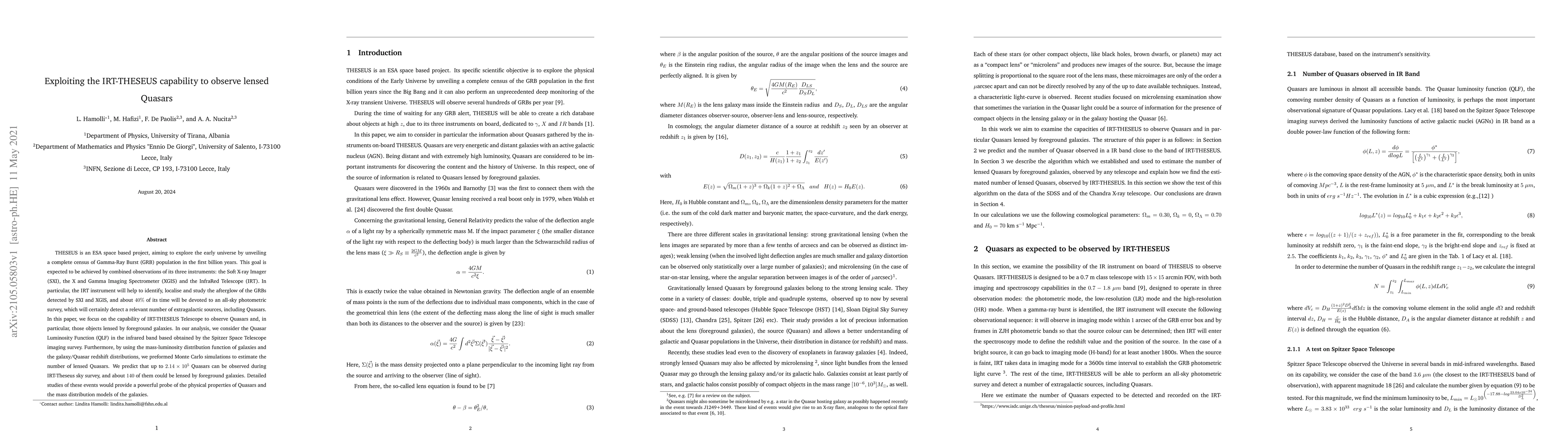 This paper investigates the capability of the IRT instrument on the THESEUS space telescope to observe Quasars, particularly those lensed by foreground galaxies. Using simulations based on the Quasar Luminosity Function and galaxy mass-luminosity distribution, the study predicts that the IRT-THESEUS survey could detect up to 214,000 Quasars, with approximately 140 of them being lensed.