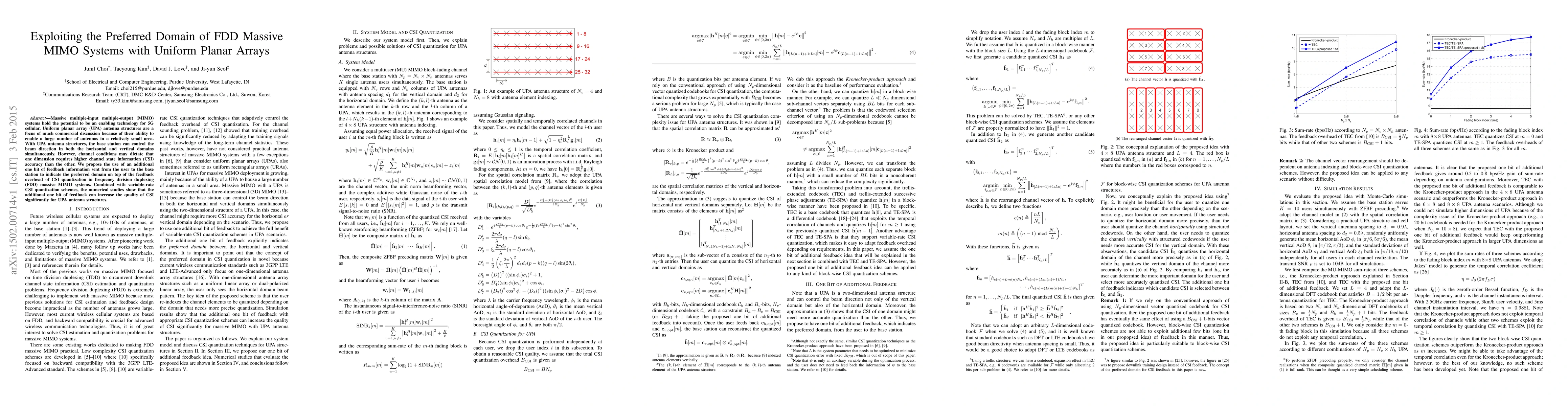 This paper proposes utilizing an extra bit of feedback in FDD massive MIMO systems with UPAs to indicate the preferred domain for higher channel state information accuracy, enhancing CSI quality and performance. Numerical studies demonstrate that this approach, when combined with variable-rate CSI quantization, can significantly improve channel state information accuracy.