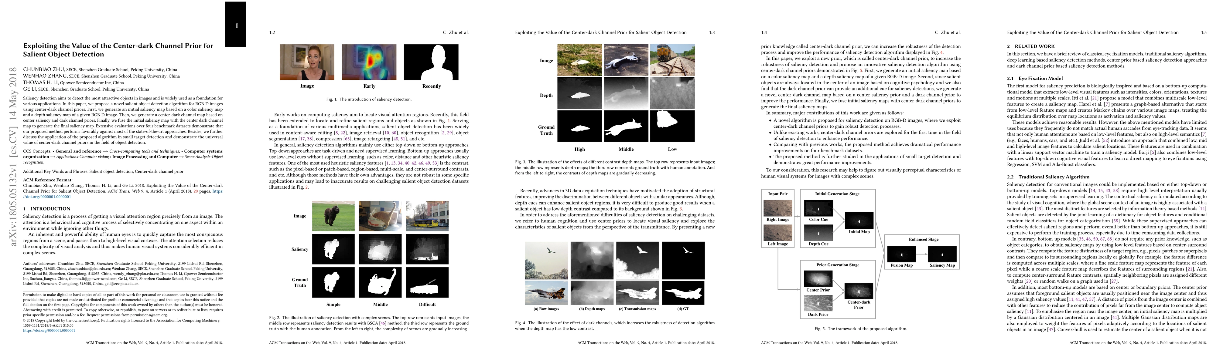 Saliency detection aims to detect the most attractive objects in images and is widely used as a foundation for various applications. In this paper, we propose a novel salient object detection algorithm for RGB-D images using center-dark channel priors. First, we generate an initial saliency map based on a color saliency map and a depth saliency map of a given RGB-D image. Then, we generate a center-dark channel map based on center saliency and dark channel priors. Finally, we fuse the initial saliency map with the center dark channel map to generate the final saliency map. Extensive evaluations over four benchmark datasets demonstrate that our proposed method performs favorably against most of the state-of-the-art approaches. Besides, we further discuss the application of the proposed algorithm in small target detection and demonstrate the universal value of center-dark channel priors in the field of object detection.