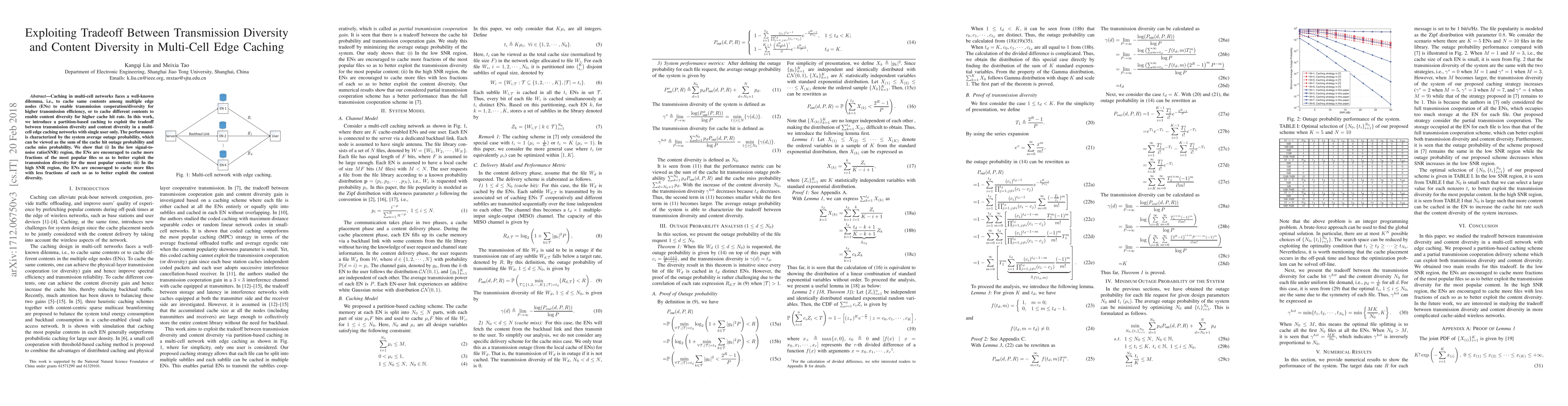 This research paper explores the tradeoff between caching popular files for efficient transmission diversity and caching diverse content for high cache hit rates in multi-cell edge caching networks.