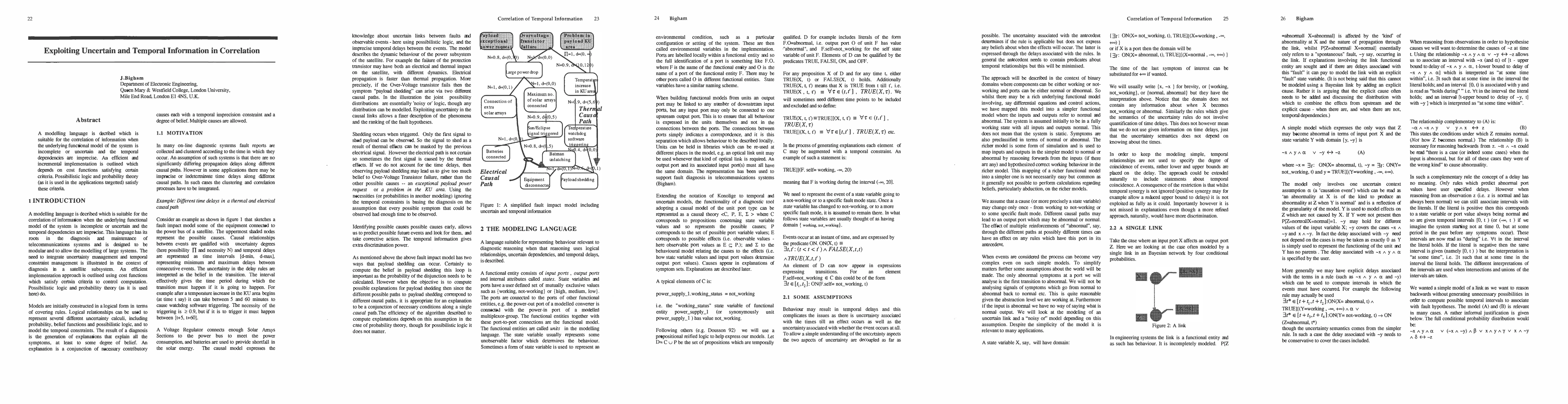 A modelling language is described which is suitable for the correlation of information when the underlying functional model of the system is incomplete or uncertain and the temporal dependencies are imprecise. An efficient and incremental implementation is outlined which depends on cost functions satisfying certain criteria. Possibilistic logic and probability theory (as it is used in the applications targetted) satisfy these criteria.