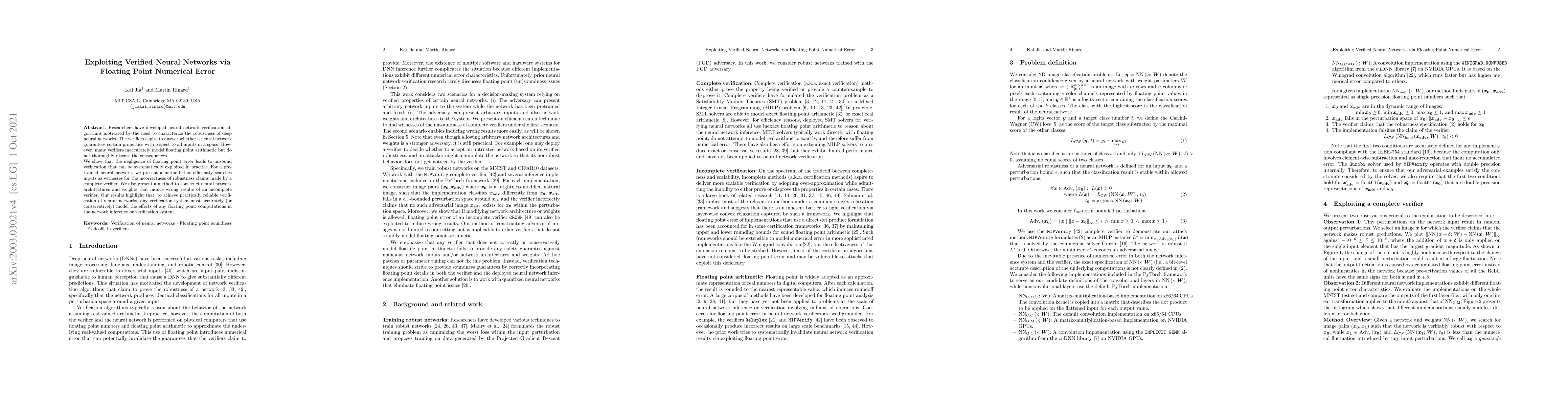 This paper demonstrates that neural network verification algorithms can be unsound due to inadequate modeling of floating point numerical errors. It proposes methods to exploit these inaccuracies to find counterexamples and construct networks that mislead incomplete verifiers, emphasizing the necessity for accurate floating point modeling in verification systems.