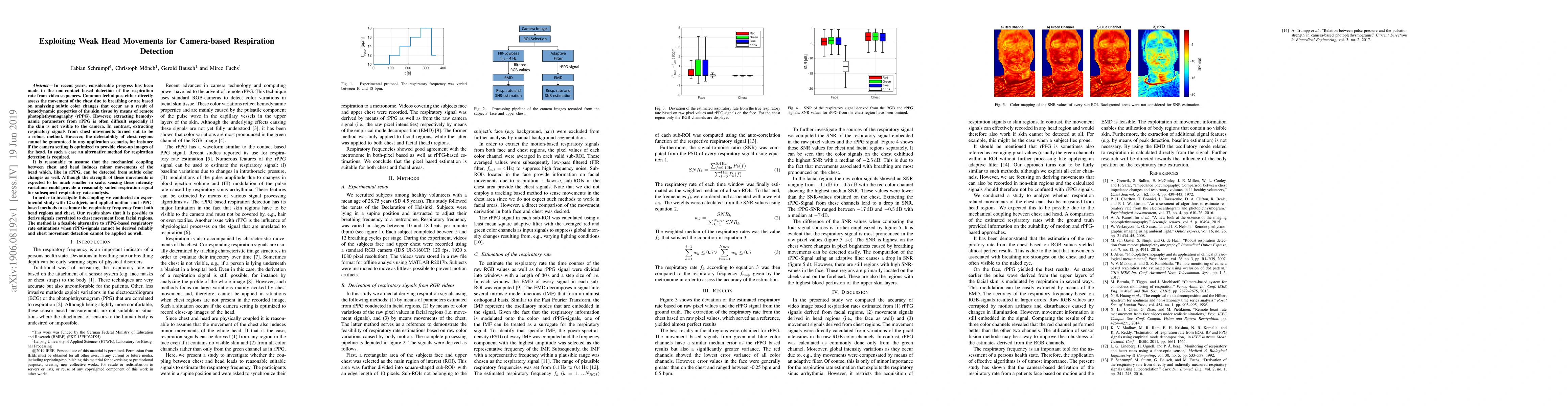 In recent years, considerable progress has been made in the non-contact based detection of the respiration rate from video sequences. Common techniques either directly assess the movement of the chest due to breathing or are based on analyzing subtle color changes that occur as a result of hemodynamic properties of the skin tissue by means of remote photoplethysmography (rPPG). However, extracting hemodynamic parameters from rPPG is often difficult especially if the skin is not visible to the camera. In contrast, extracting respiratory signals from chest movements turned out to be a robust method. However, the detectability of chest regions cannot be guaranteed in any application scenario, for instance if the camera setting is optimized to provide close-up images of the head. In such a case an alternative method for respiration detection is required. It is reasonable to assume that the mechanical coupling between chest and head induces minor movements of the head which, like in rPPG, can be detected from subtle color changes as well. Although the strength of these movements is expected to be much smaller in scale, sensing these intensity variations could provide a reasonably suited respiration signal for subsequent respiratory rate analysis. In order to investigate this coupling we conducted an experimental study with 12 subjects and applied motion- and rPPG-based methods to estimate the respiratory frequency from both head regions and chest. Our results show that it is possible to derive signals correlated to chest movement from facial regions. The method is a feasible alternative to rPPG-based respiratory rate estimations when rPPG-signals cannot be derived reliably and chest movement detection cannot be applied as well.