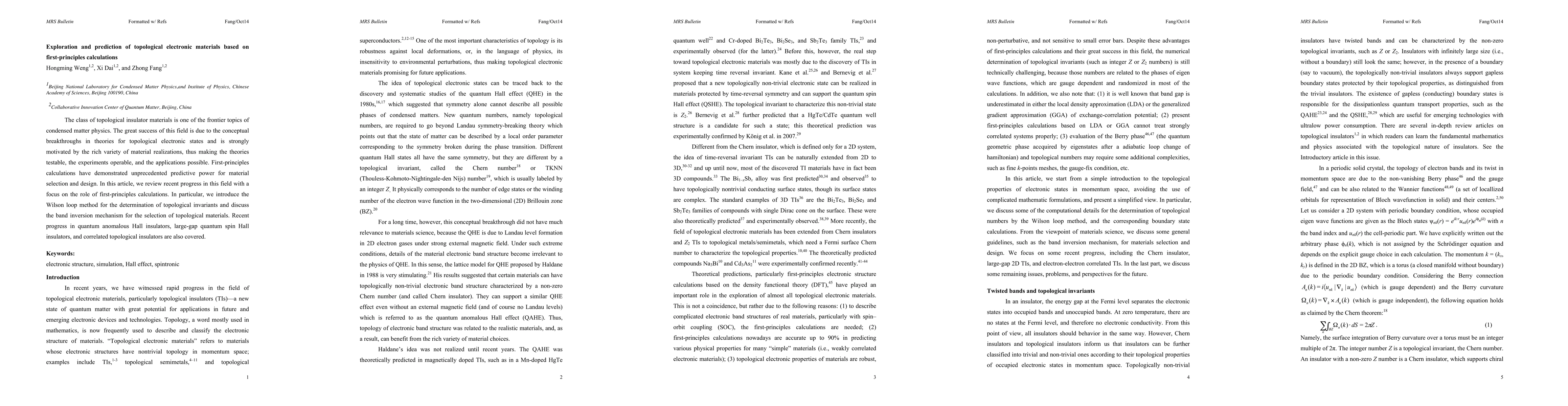 This paper reviews the use of first-principles calculations to explore and predict topological insulator materials, highlighting the Wilson loop method for determining topological invariants and the band inversion mechanism. It covers advancements in quantum anomalous Hall insulators, large-gap quantum spin Hall insulators, and correlated topological insulators.