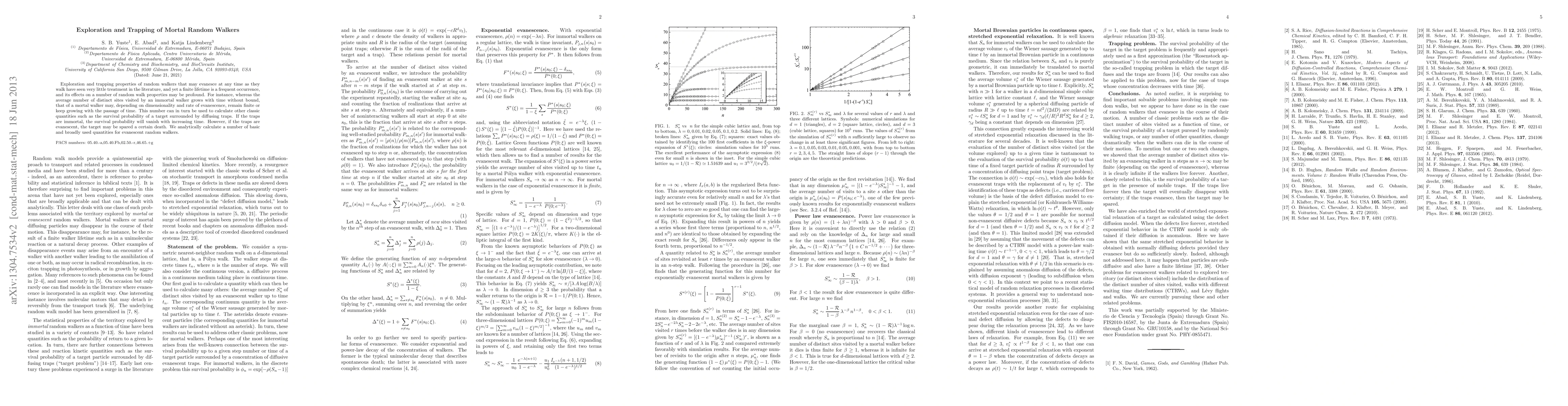 A combination of analytical and numerical methods were used to study the behavior of evanescent random walkers.