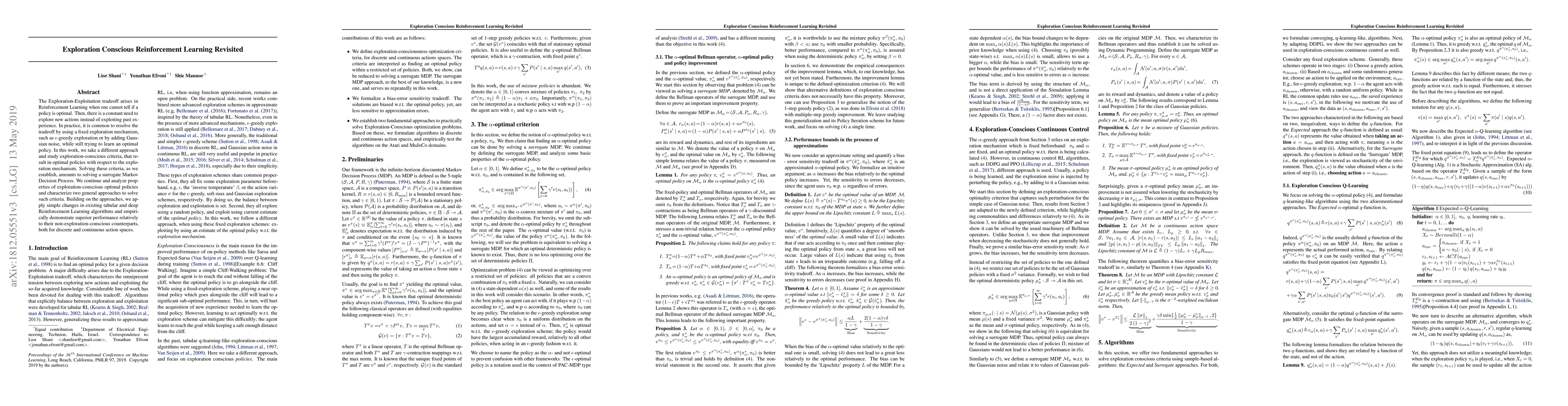 The Exploration-Exploitation tradeoff arises in Reinforcement Learning when one cannot tell if a policy is optimal. Then, there is a constant need to explore new actions instead of exploiting past experience. In practice, it is common to resolve the tradeoff by using a fixed exploration mechanism, such as $\epsilon$-greedy exploration or by adding Gaussian noise, while still trying to learn an optimal policy. In this work, we take a different approach and study exploration-conscious criteria, that result in optimal policies with respect to the exploration mechanism. Solving these criteria, as we establish, amounts to solving a surrogate Markov Decision Process. We continue and analyze properties of exploration-conscious optimal policies and characterize two general approaches to solve such criteria. Building on the approaches, we apply simple changes in existing tabular and deep Reinforcement Learning algorithms and empirically demonstrate superior performance relatively to their non-exploration-conscious counterparts, both for discrete and continuous action spaces.