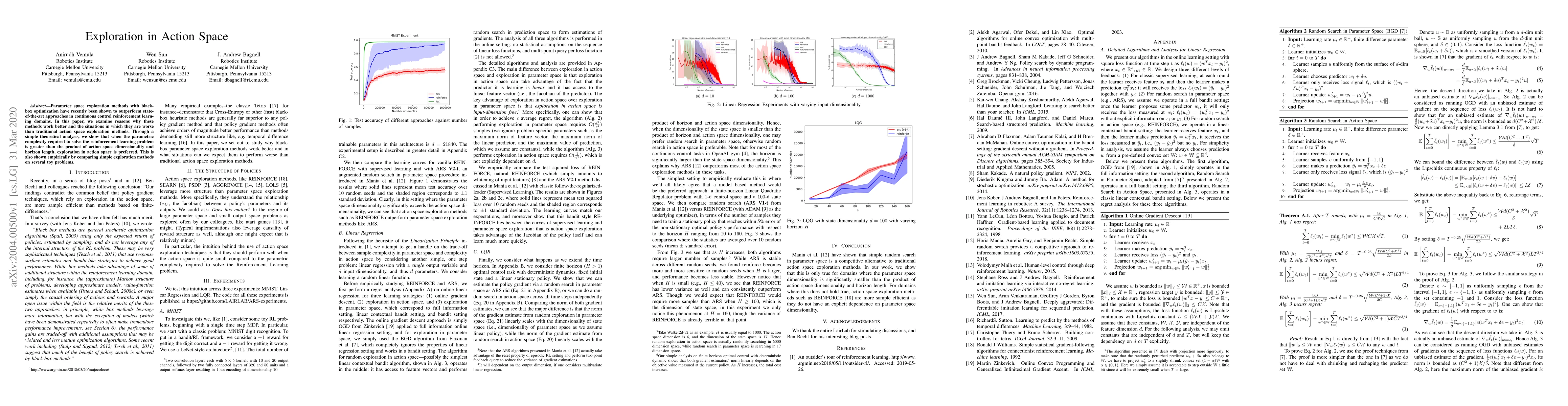 Parameter space exploration methods with black-box optimization have recently been shown to outperform state-of-the-art approaches in continuous control reinforcement learning domains. In this paper, we examine reasons why these methods work better and the situations in which they are worse than traditional action space exploration methods. Through a simple theoretical analysis, we show that when the parametric complexity required to solve the reinforcement learning problem is greater than the product of action space dimensionality and horizon length, exploration in action space is preferred. This is also shown empirically by comparing simple exploration methods on several toy problems.